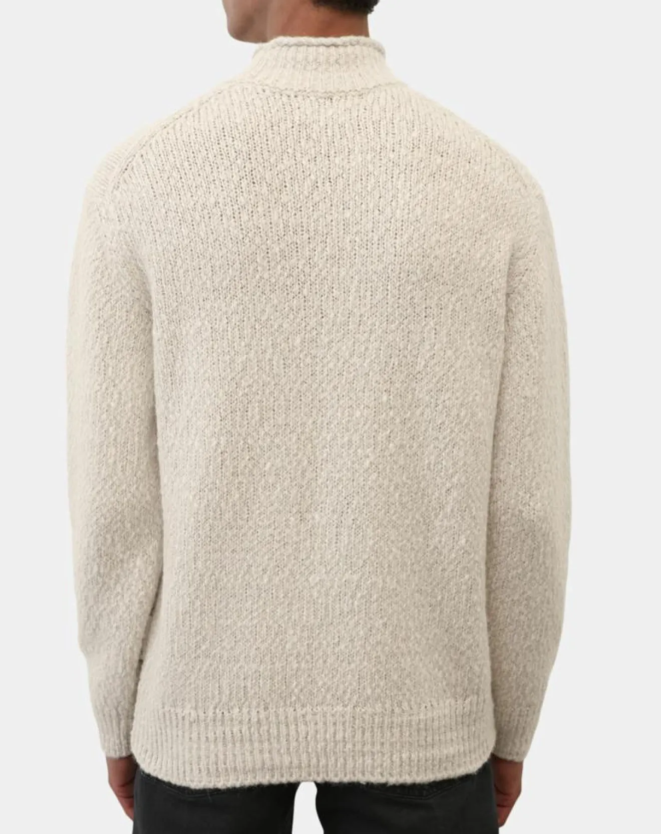 Son col montant côtelé présente un bord roulotté : ce pull-over en maille de qualité supérieure à la texture flammée décontractée est confectionné dans un mélange de coton doux à haute teneur en laine vierge douce et laine d’alpaga douillette.