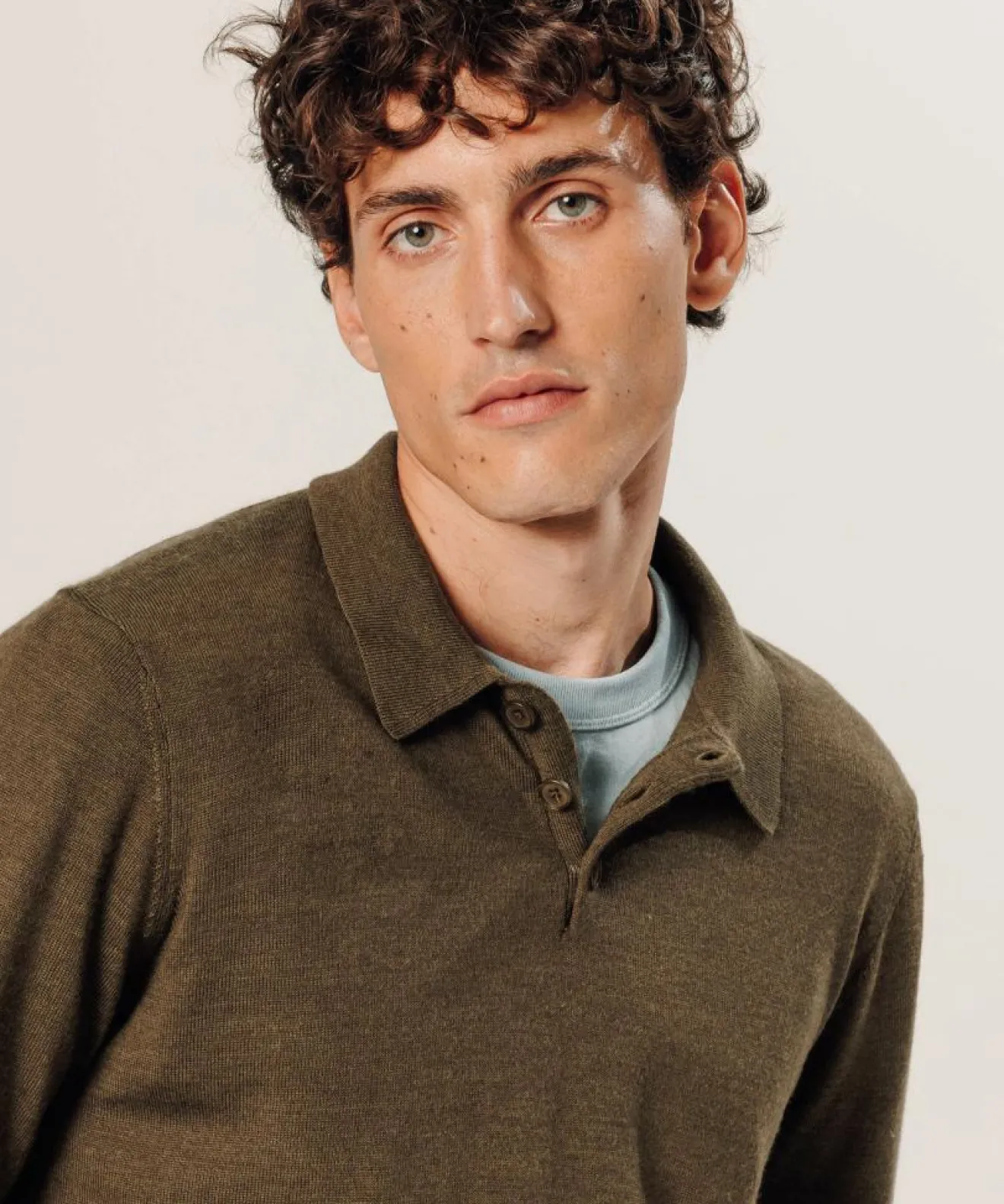 Clearance Rodier Pull Gérard 100% laine col polo marron écorce