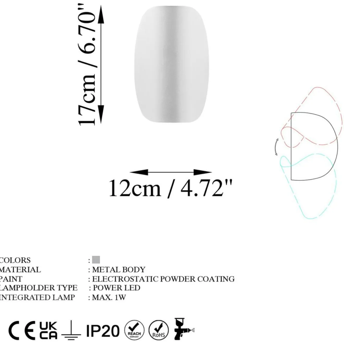 Type de douille : LED 1W 3000KIP20