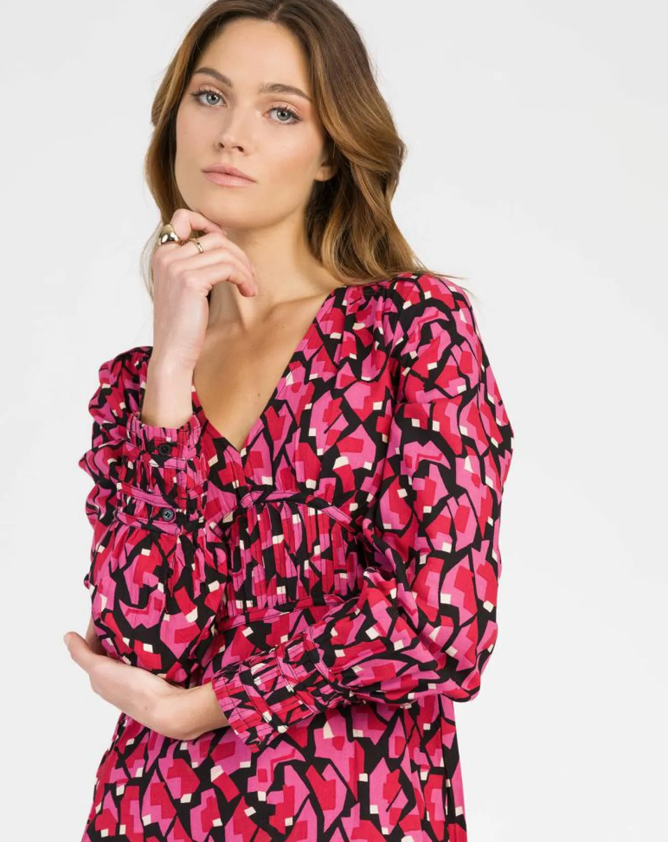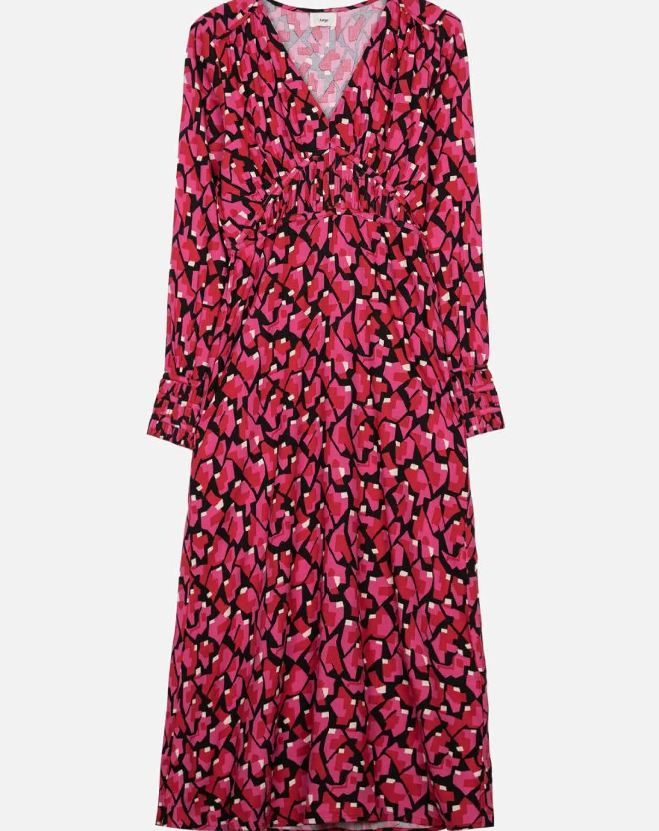 Cette robe midi élégante et graphique est confectionné dans un tissu imprimé en viscose