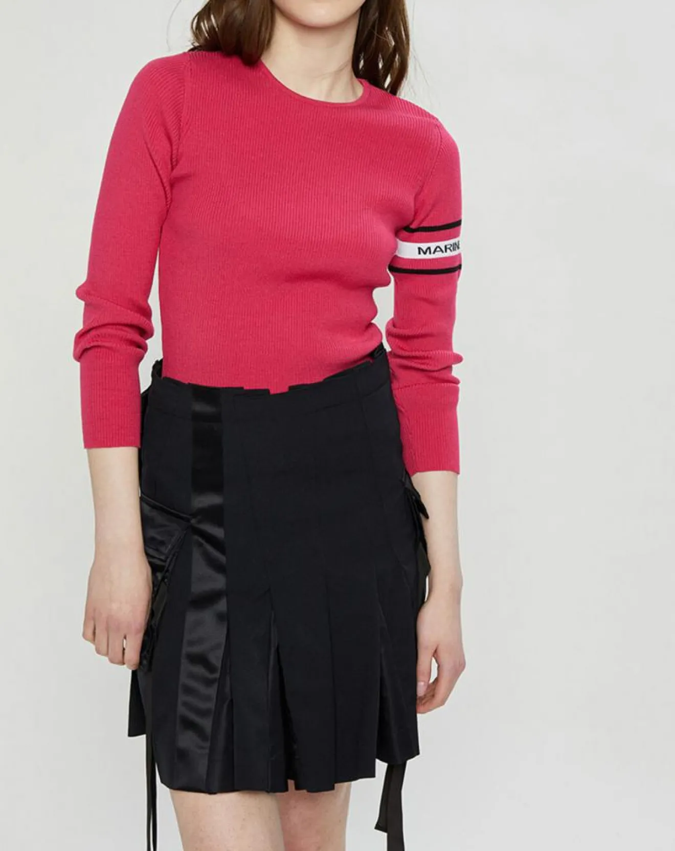 Ce pull ajusté Marine Serre composé de laine présente un col rond, des manches longues, une base évasée et un fini côtelé.
