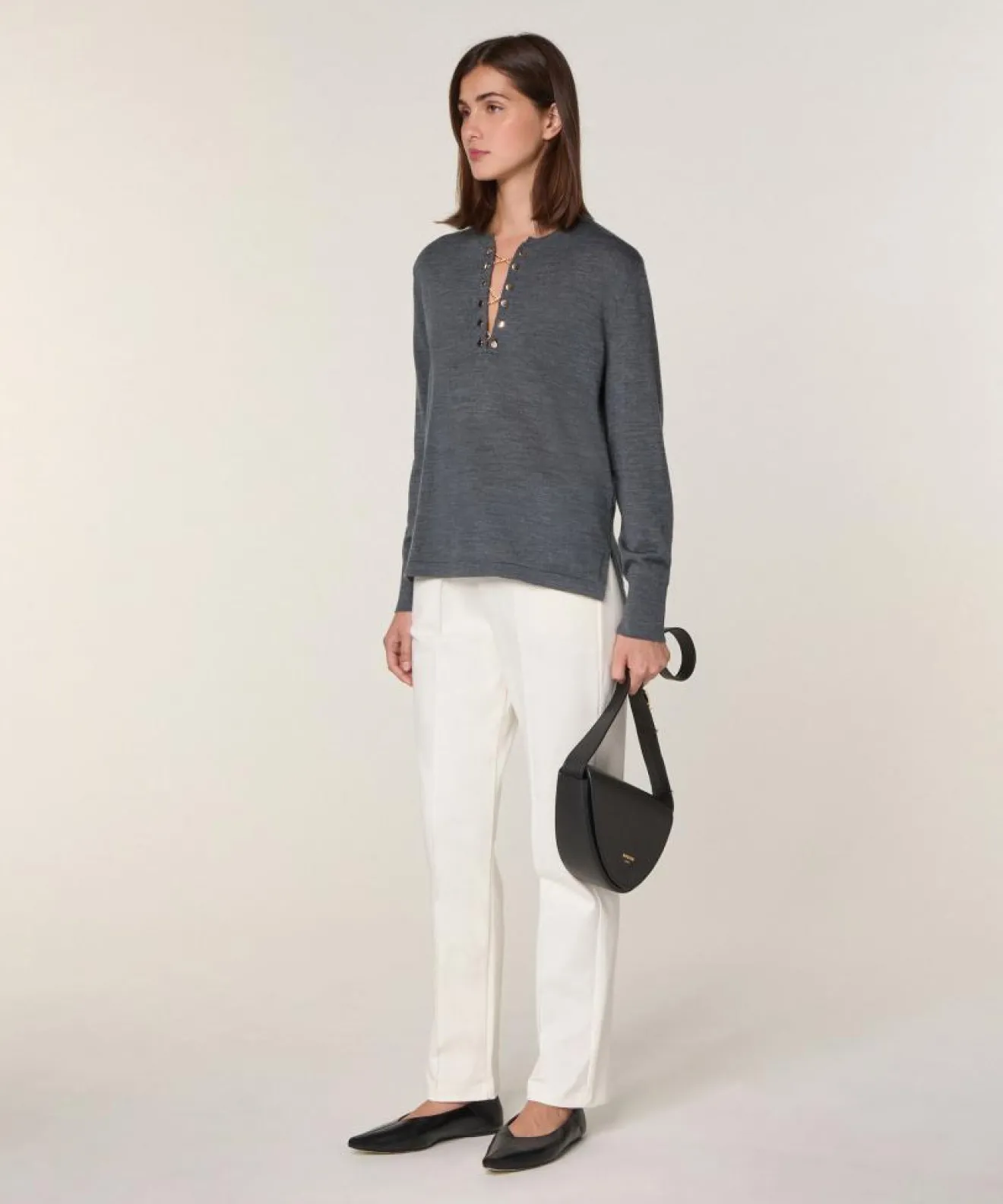 Discount Rodier Pull Adija 100% Laine chaine col V gris foncé