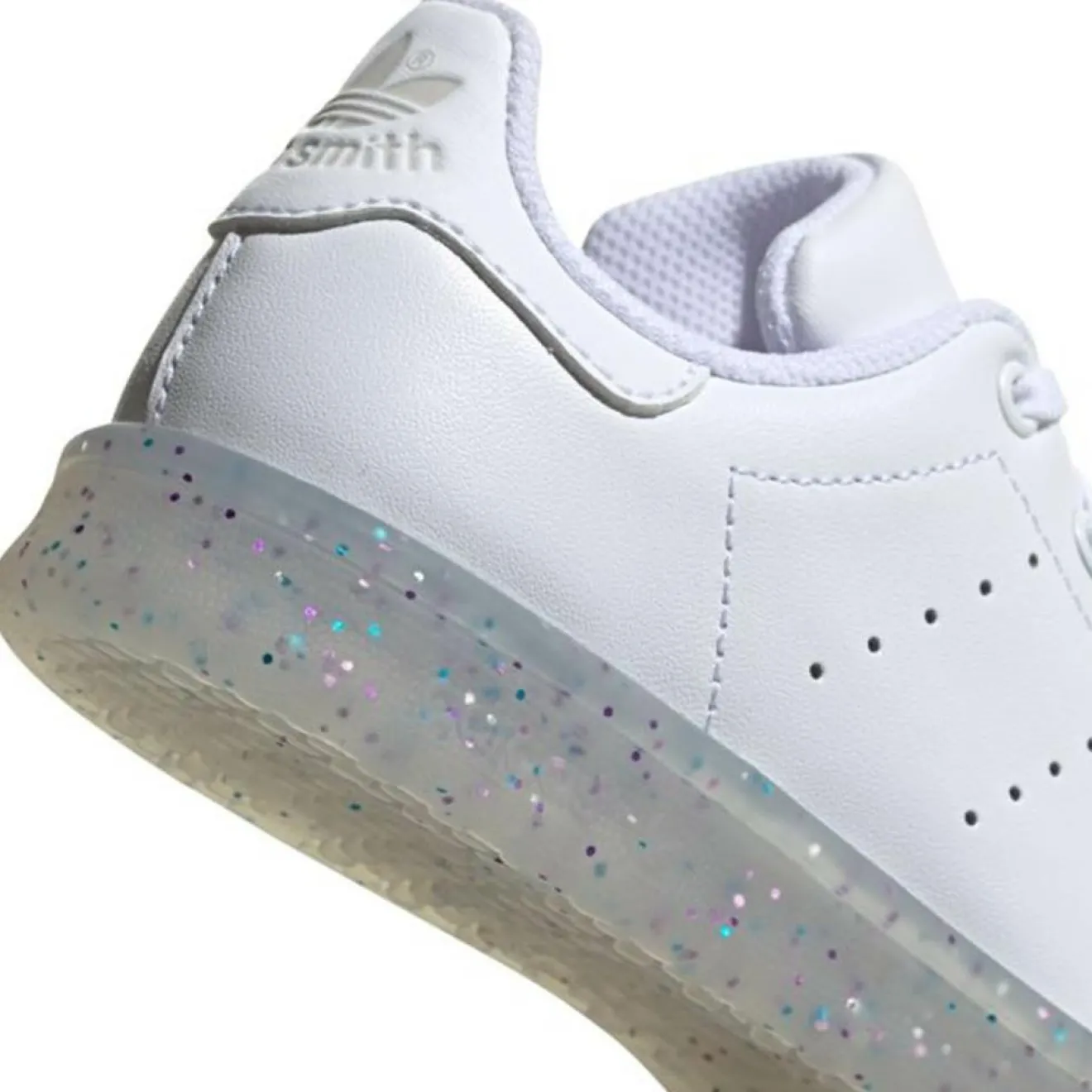 Conçue en hommage à l’un des plus grands tennismen de l’histoire, la Stan Smith est célèbre pour son design moderne et minimaliste. Cette chaussure enfants affiche un look festif avec une semelle extérieure semi-translucide à paillettes. Fidèle au modèle vintage, elle affiche une tige en cuir et 3 bandes perforées.