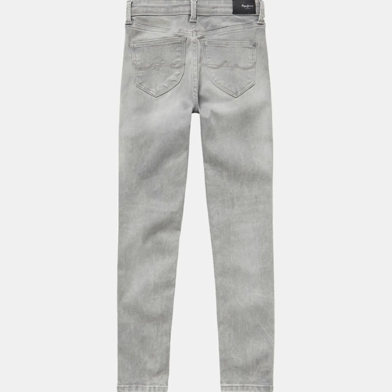 Ce jean stretch et skinny Pepe Jeans composé de coton gris présente des passants pour ceinture, des poches cavalières et ticket à l’avant et des poches plaquées au dos.