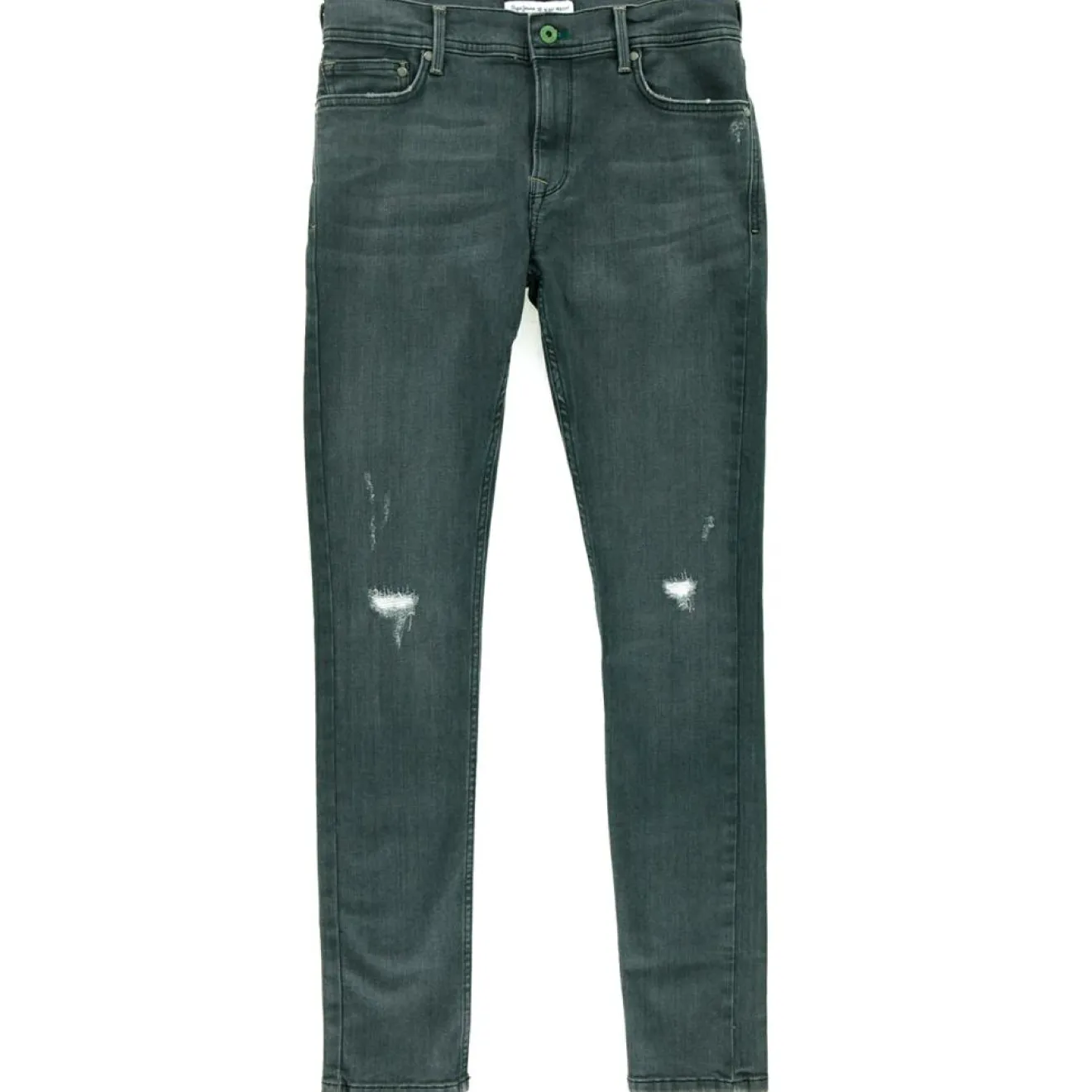 Ce jean slim Pepe Jeans composé de coton bleu brut présente une taille basse, un effet délavé et des passants pour ceinture.