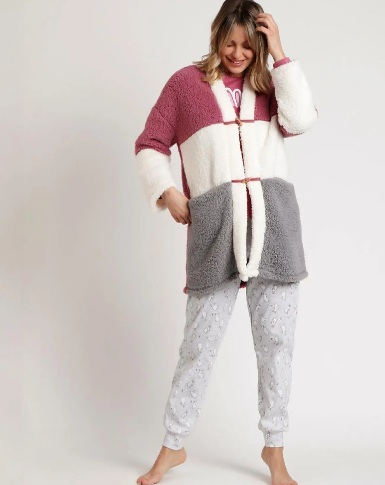 Peignoir rayé Bunnies on the Moon D rose ancien