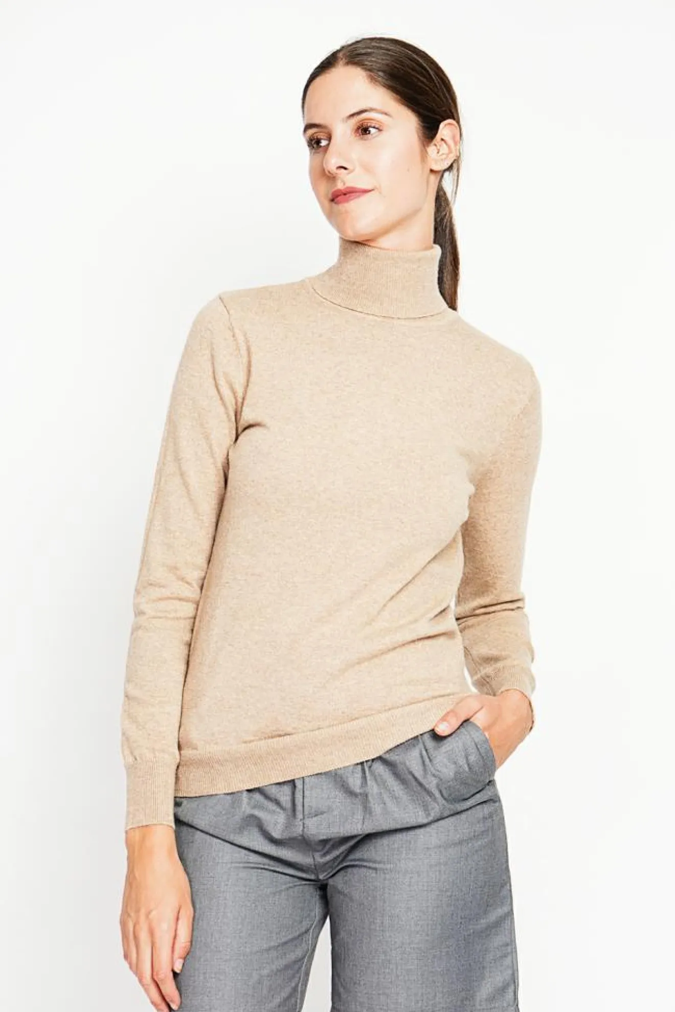 Femme Assuili Pull col roulé classique nougat