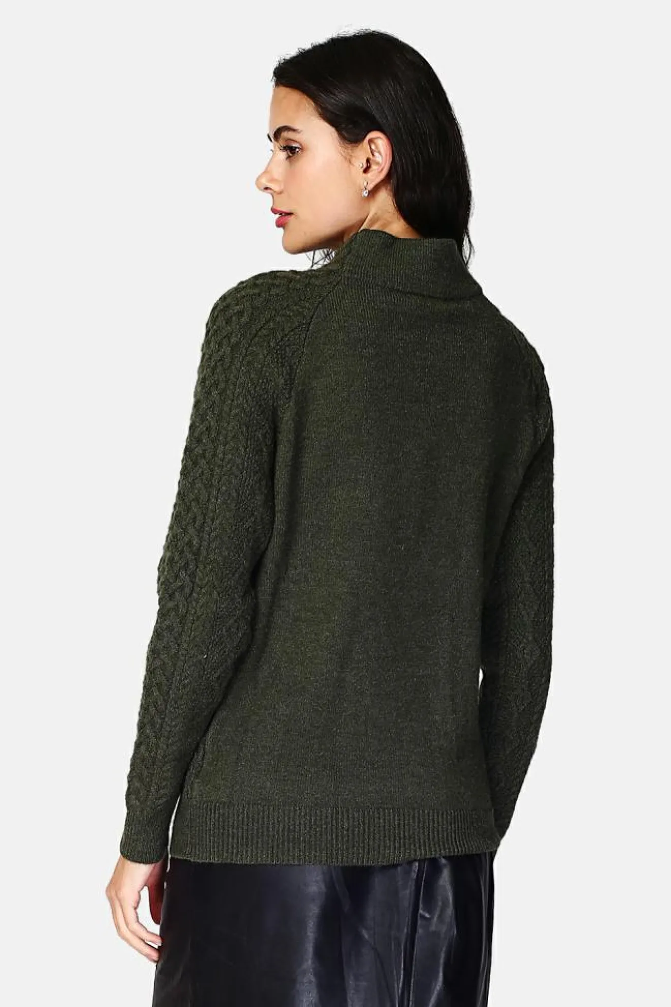 Femme Assuili Pull Encolure montante kaki