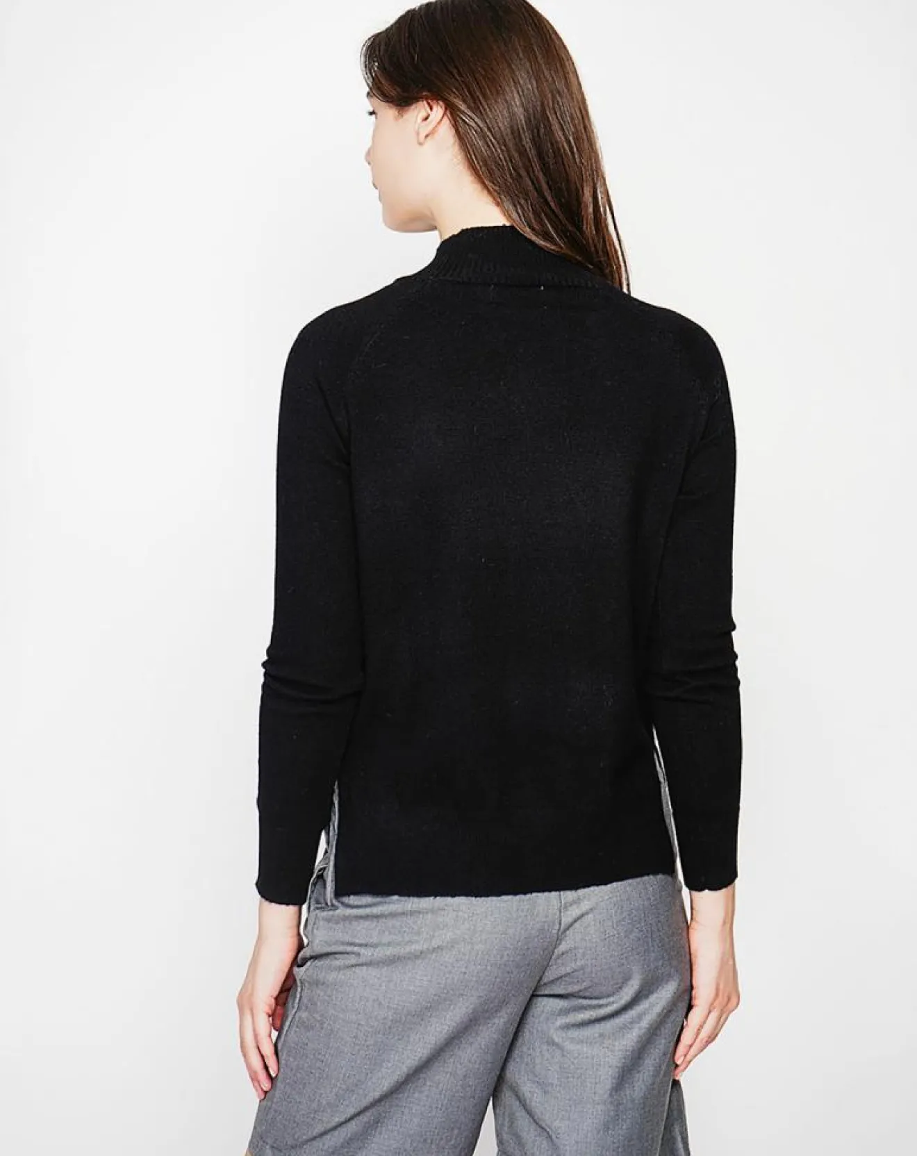 Pull col montant tricot fantaisie devant coupe oversize à manches longues