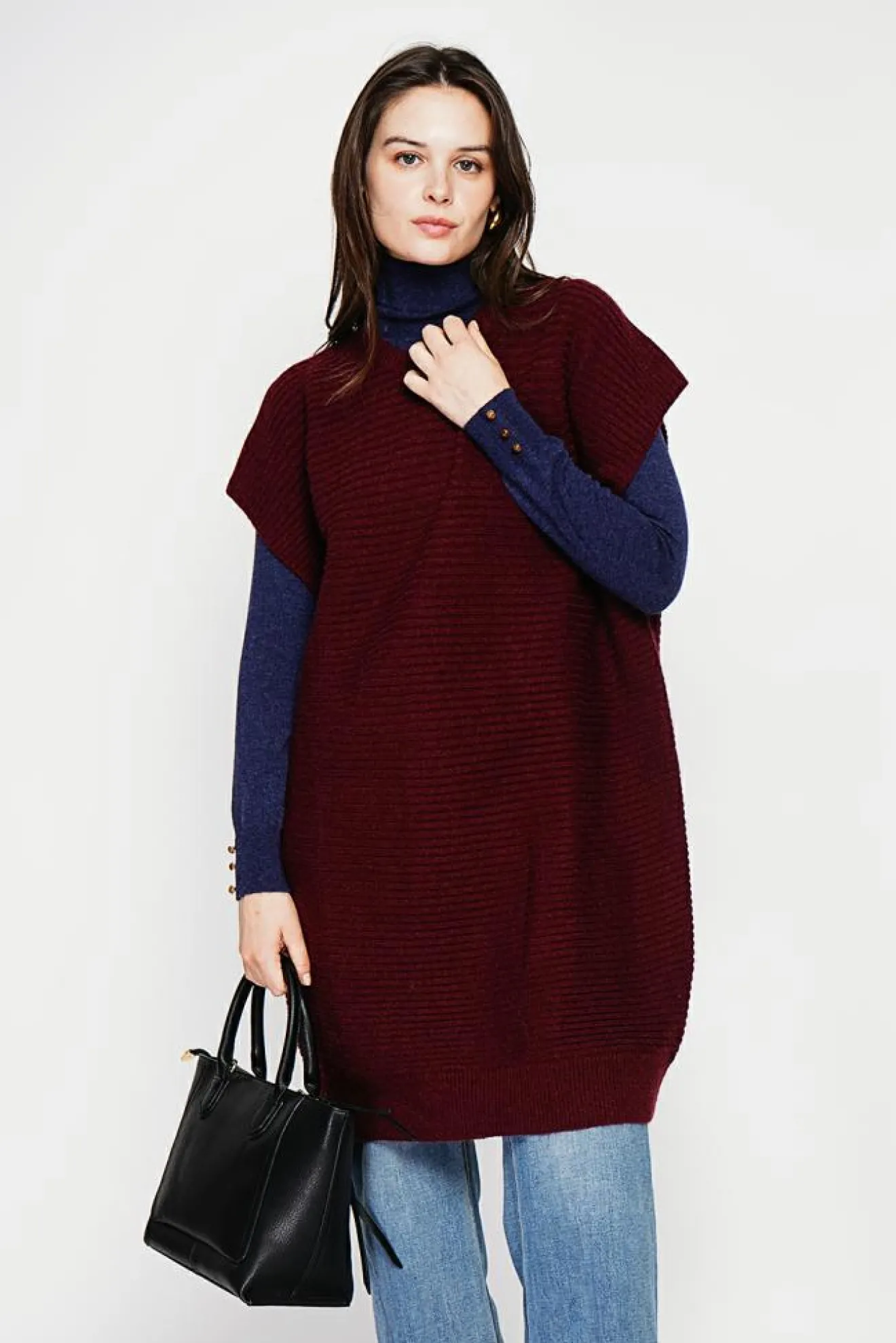 Femme C&Jo Robe poncho col rond bordeaux