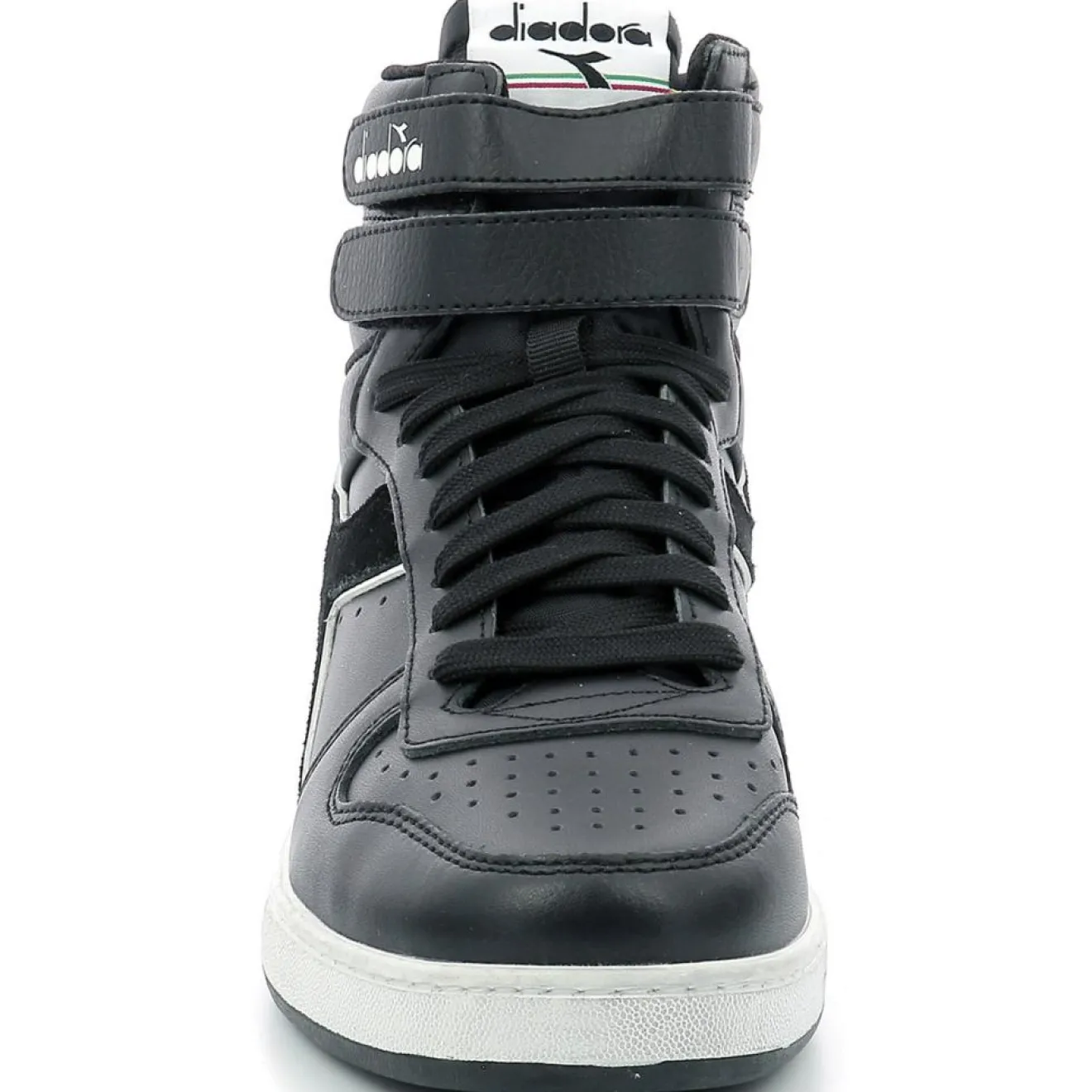 Sneaker iconique de l’univers diadora, la Magic provient directement de la section basket du catalogue de 1985. Née comme évolution de la MI Basket, avec une empeigne en cuir de veau, une semelle intérieure et une semelle intermédiaire en mousse anti-choc, avec une fermeture Velcro® spéciale dans la partie haute.