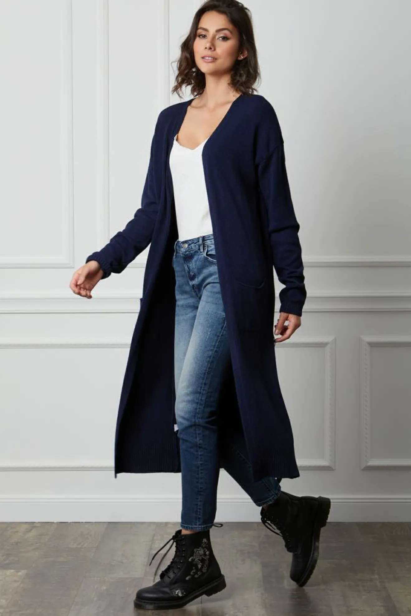 Femme Fleur de cachemire Gilet Mali Marine