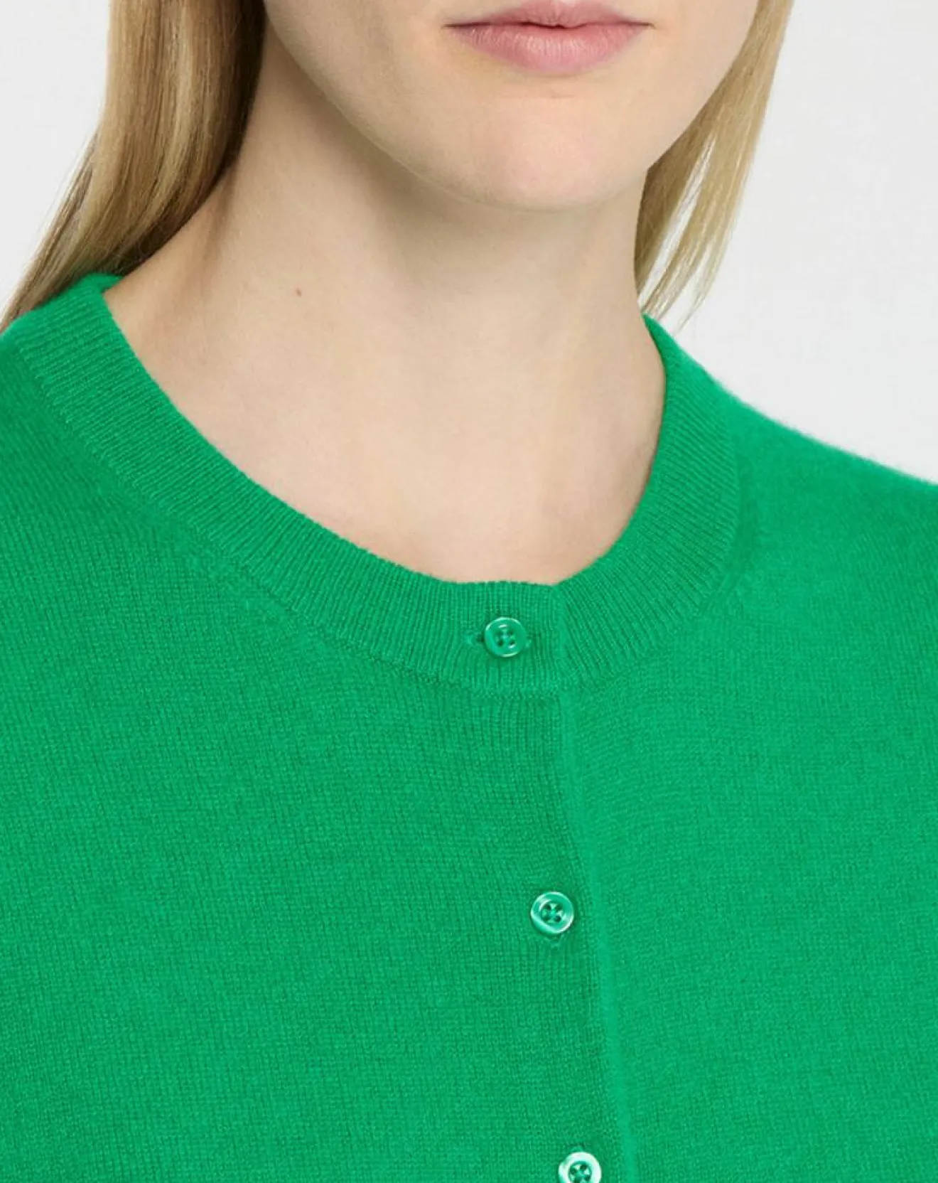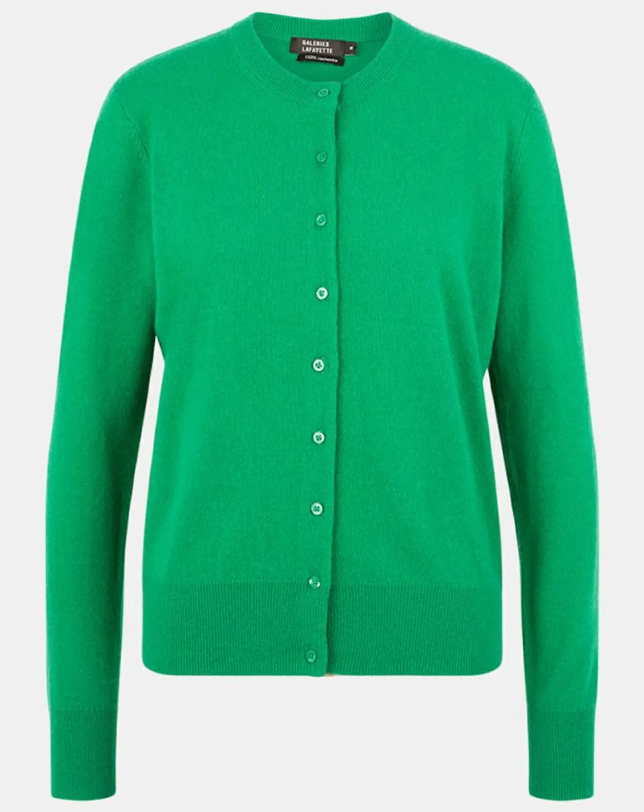 Ce cardigan droit Galeries Lafayette en cachemire est muni d’un col rond, d’une fermeture boutonnée et de finitions côtelées.