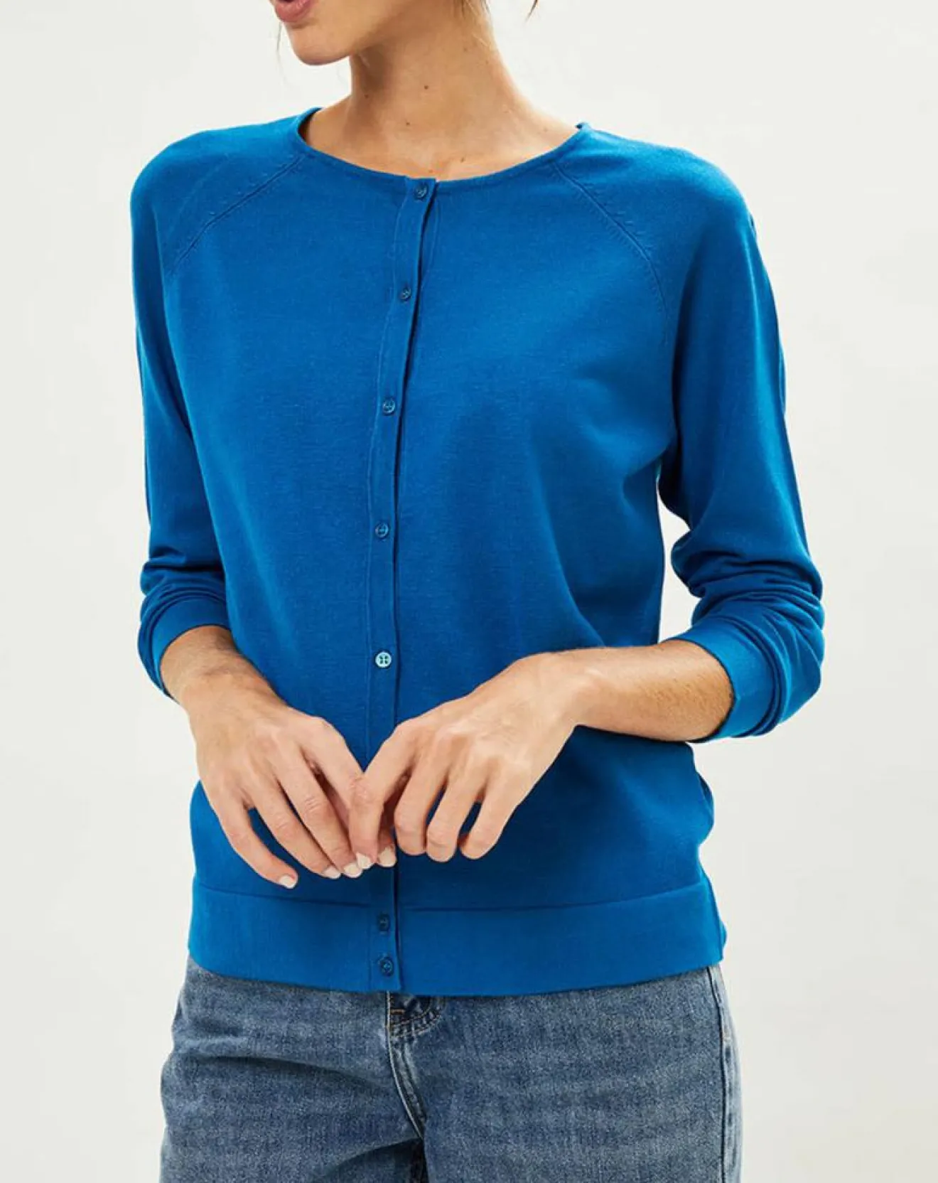 Ce cardigan court droit Galeries Lafayette en maille fine, se pare d’un col rond, de manches longues, d’une fermeture boutonnée et de finitions côtelées.