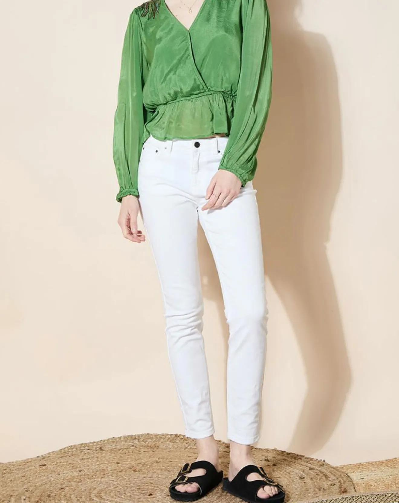 Ce jean ajusté en coton biologique Galeries Lafayette, est muni de 2 poches cavalières et d’une poche ticket sur le devant avec fermeture zippée rehaussée d’un bouton métallique, de 2 poches plates à l’arrière et de surpiqûres contrastantes.
