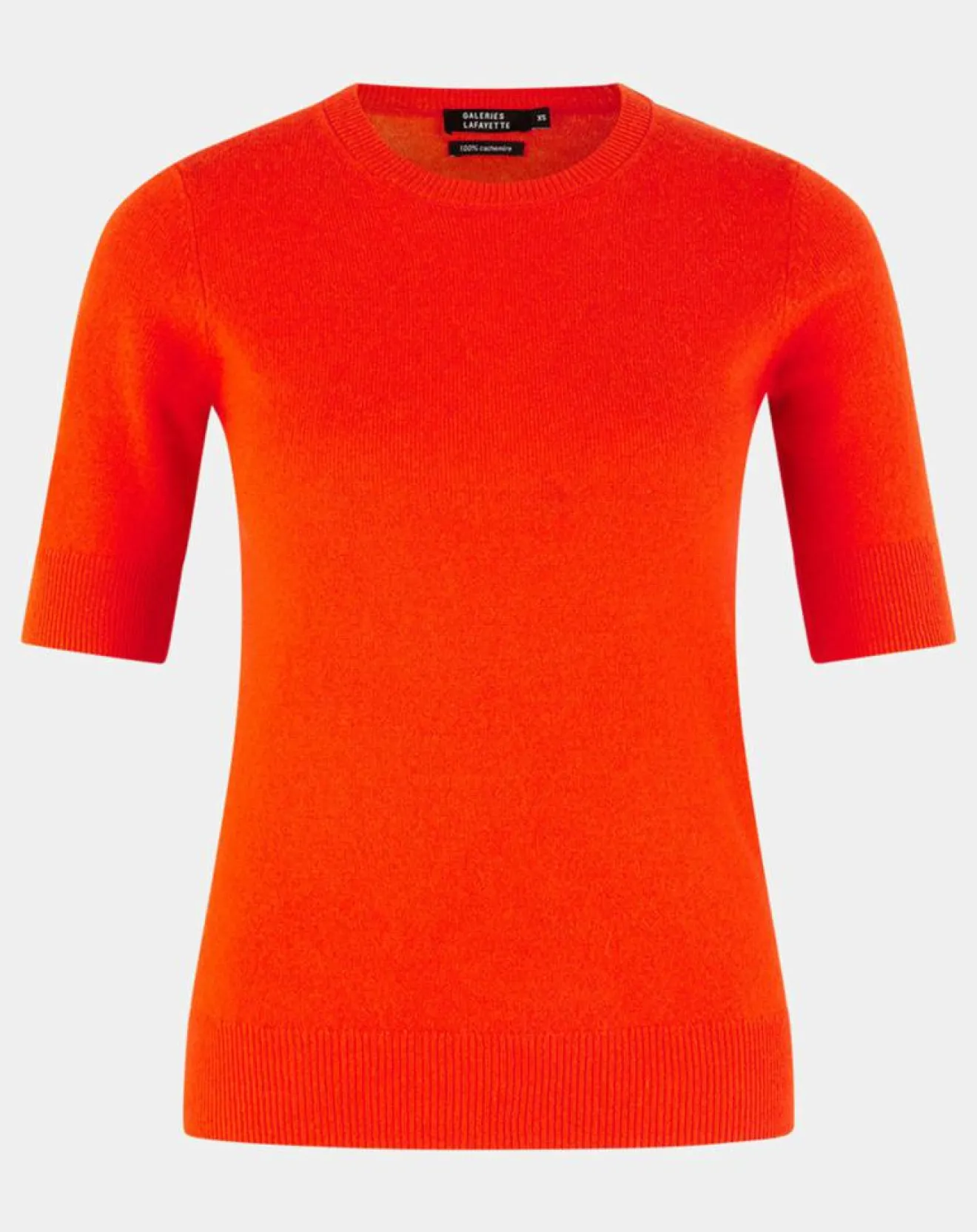 Ce pull droit Galeries Lafayette en cachemire est muni de manches courtes, d’un col rond et de finitions côtelées.