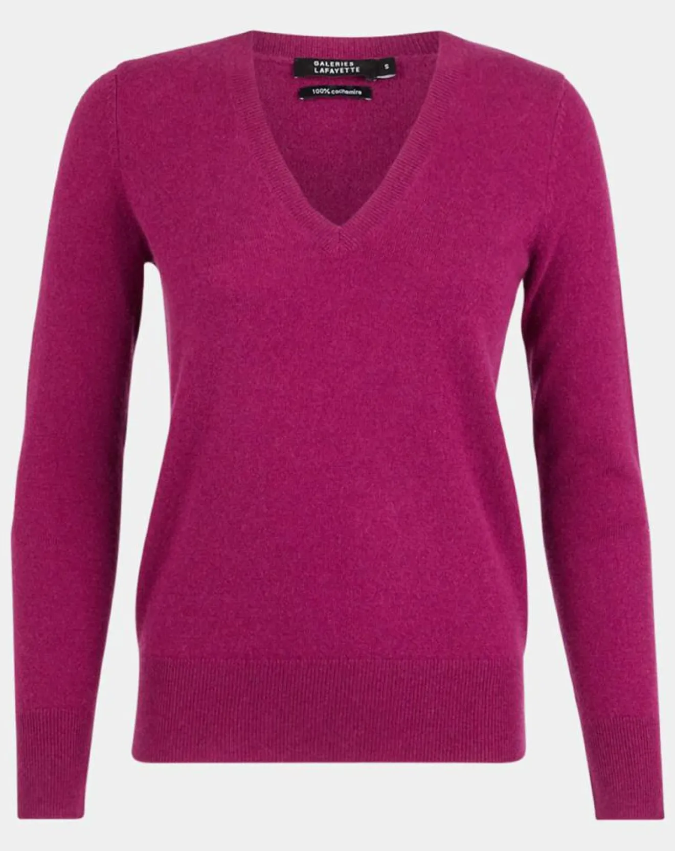 Ce pull ajusté en cachemire Galeries Lafayette est muni d’un col V, de manches longues et de finitions côtelées.