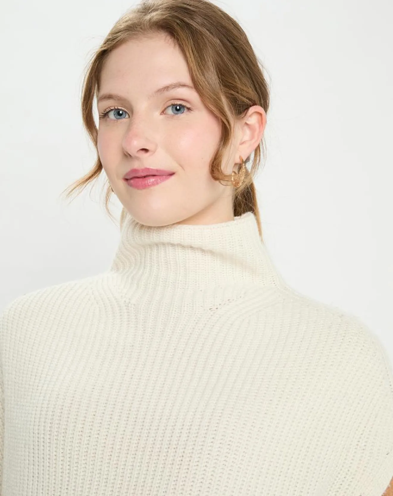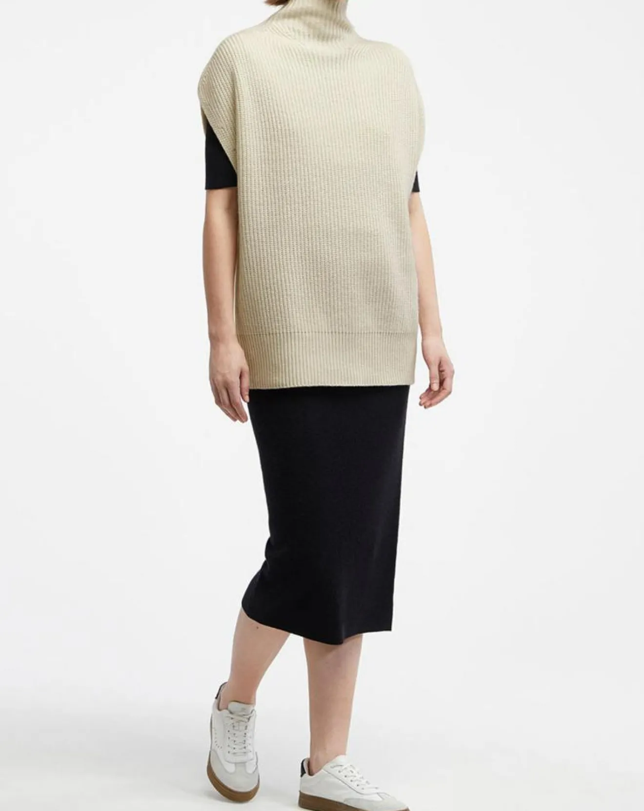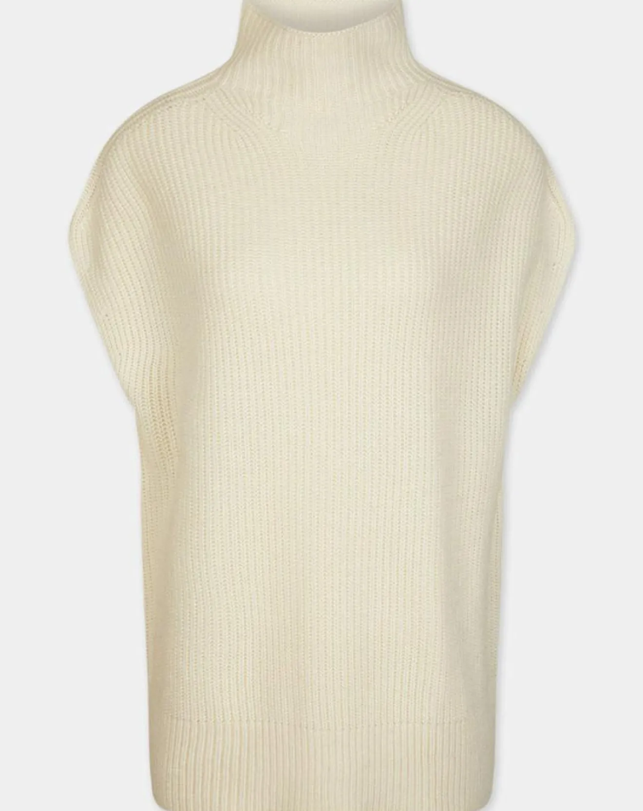 Ce pull sans manches Galeries Lafayette en laine et cachemire est muni d’un col montant et de finitions côtelées.