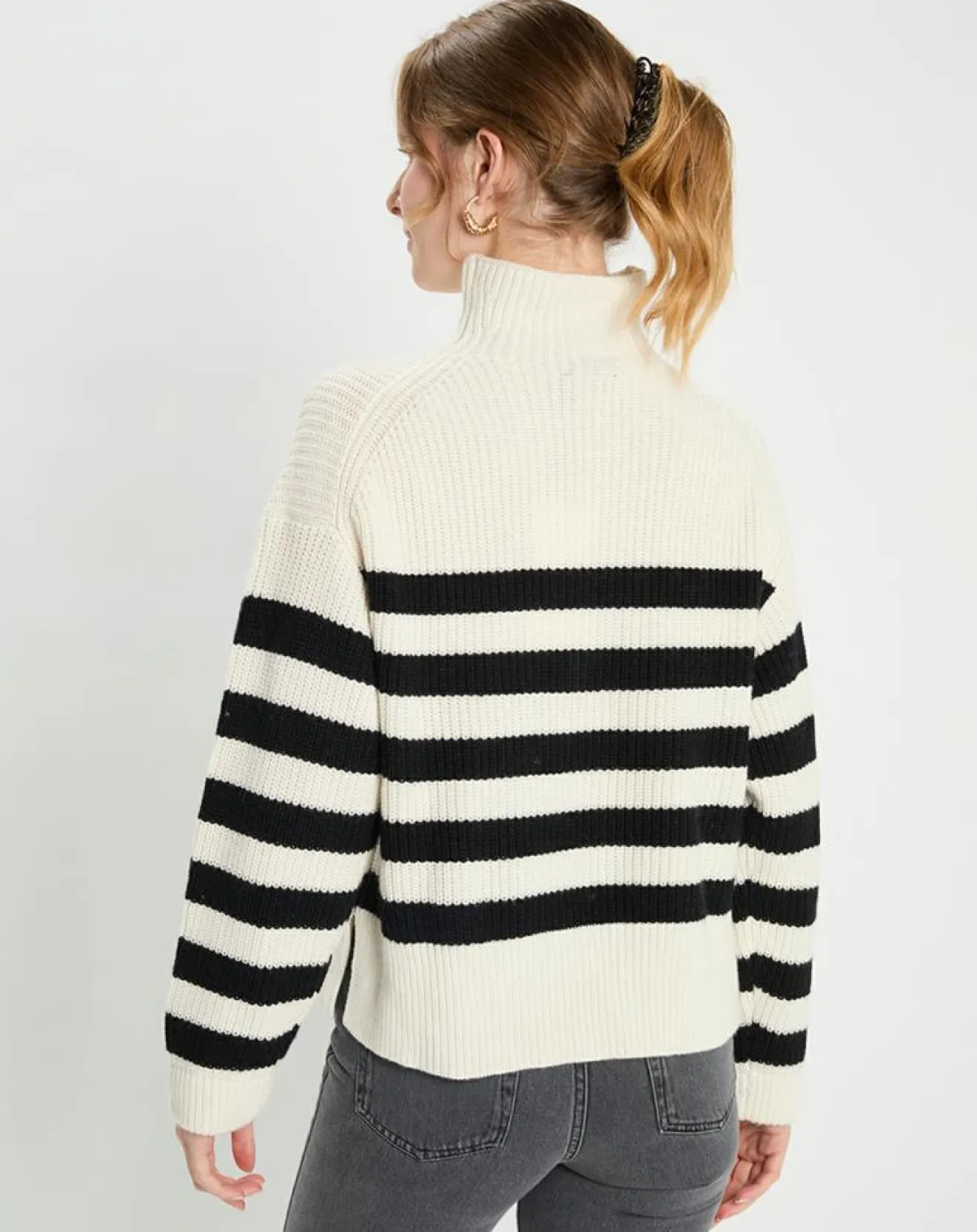 Ce pull col roulé Galeries Lafayette en laine et cachemire est doté de rayures, de manches longues, d’un ourlet fendu ainsi que de finitions côtelées.