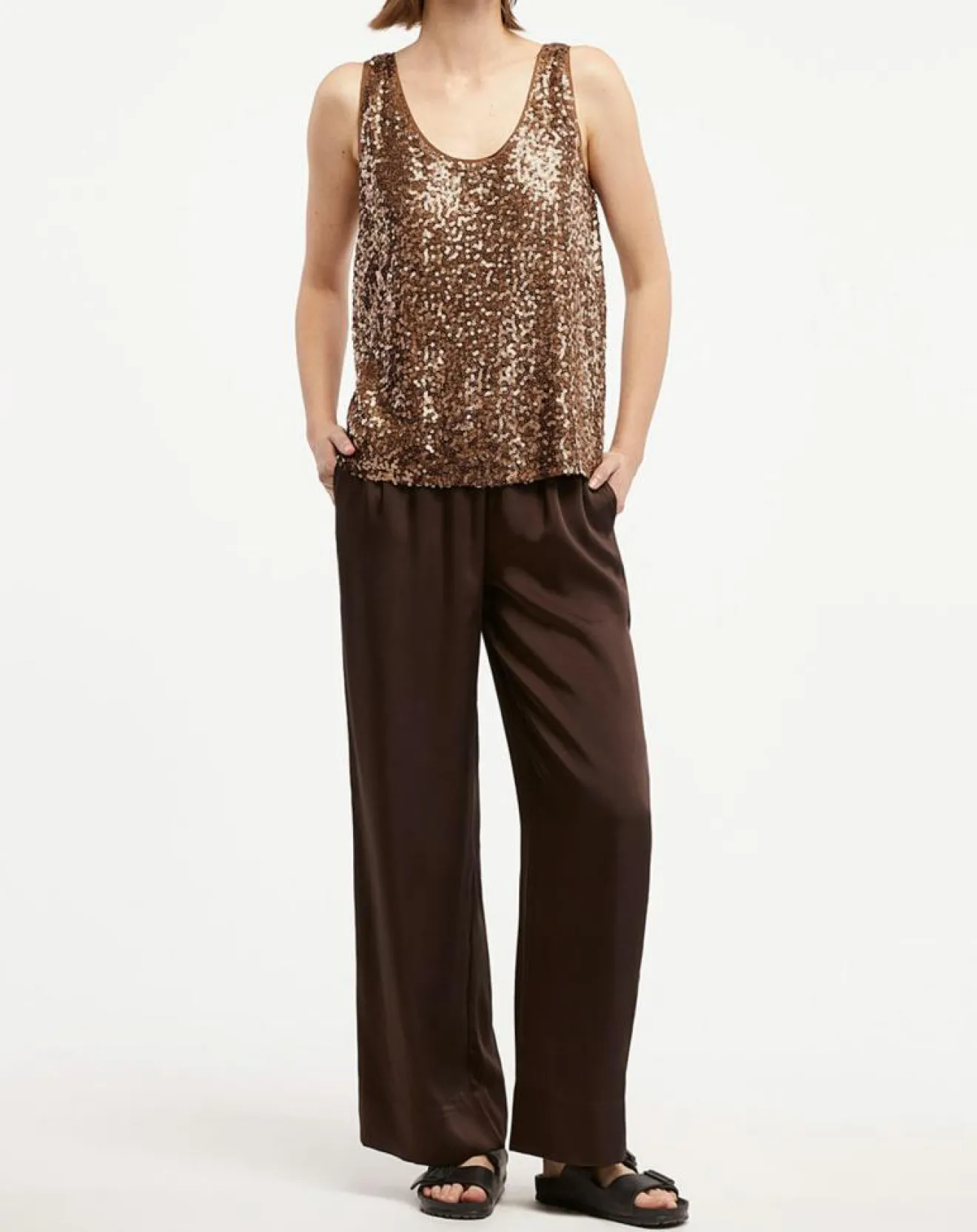 Ce débardeur droit Galeries Lafayette séduit par ses sequins, ses bretelles larges ainsi que son encolure arrondie.