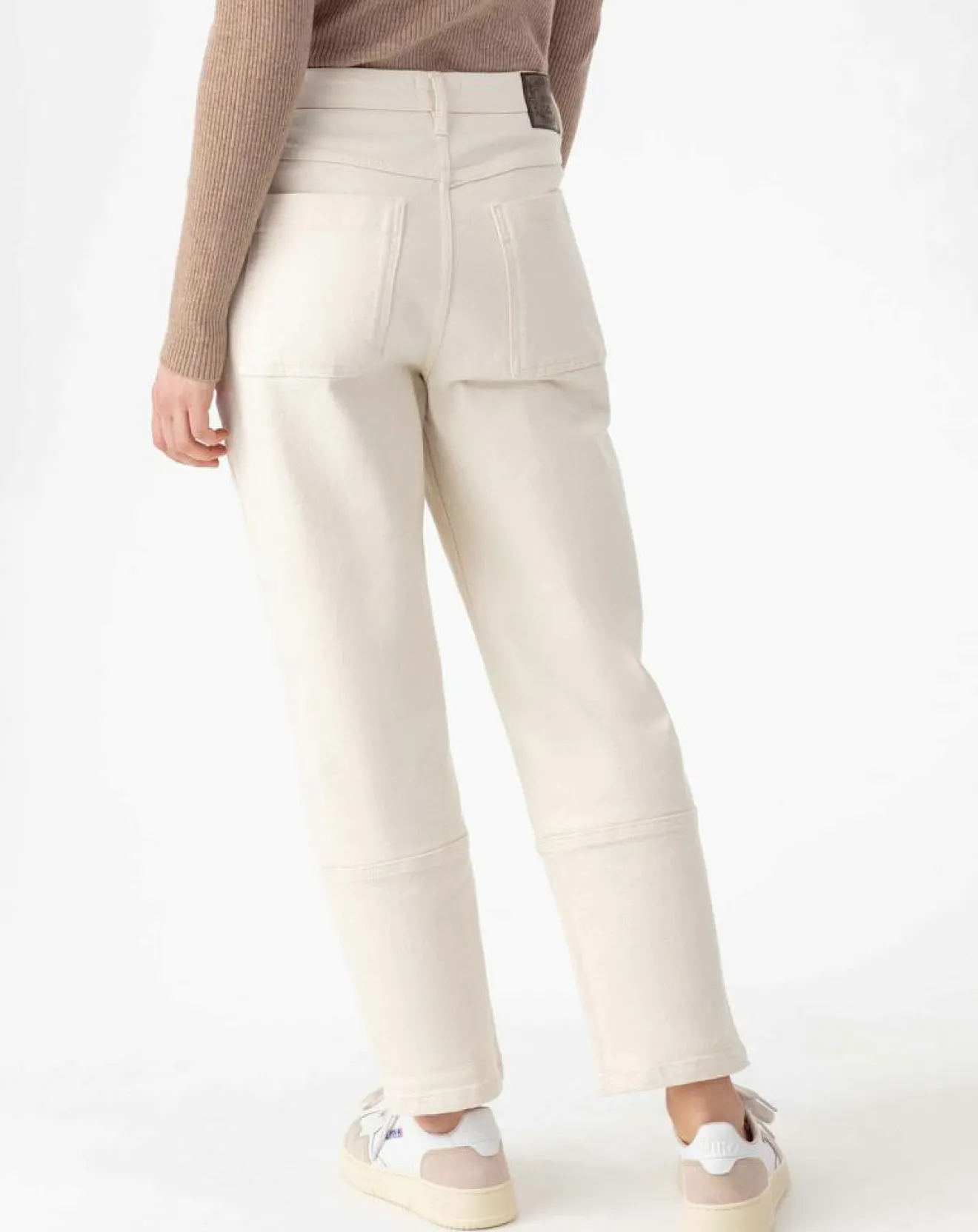 Sa coupe droite, ses poches à l’italienne et sa couleur écru vanille lui confèrent un look à la fois sportwear chic et doux