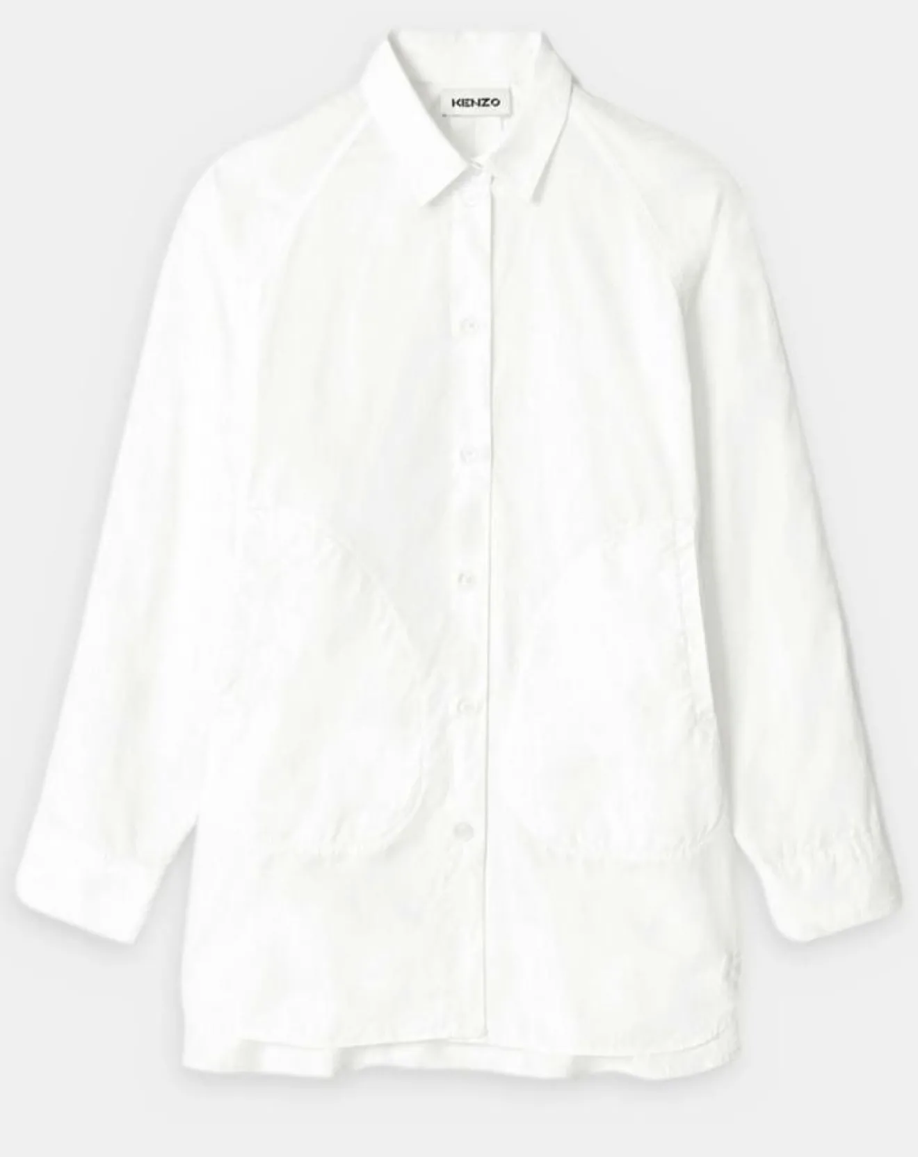Cette chemise ample Kenzo en coton présente un col classique, des manches longues, une fermeture boutonnée et des grandes poches latérales.