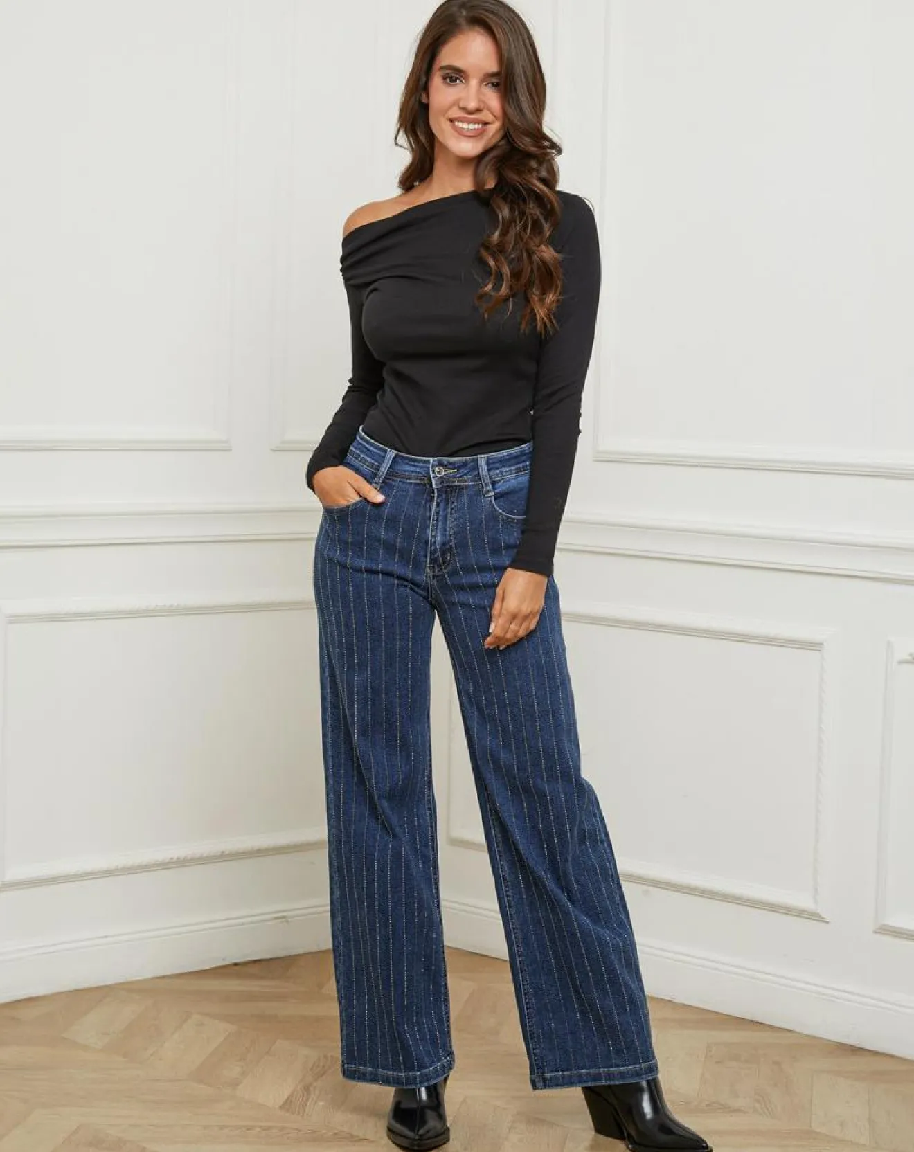 Pantalon en jeans droit avec strass