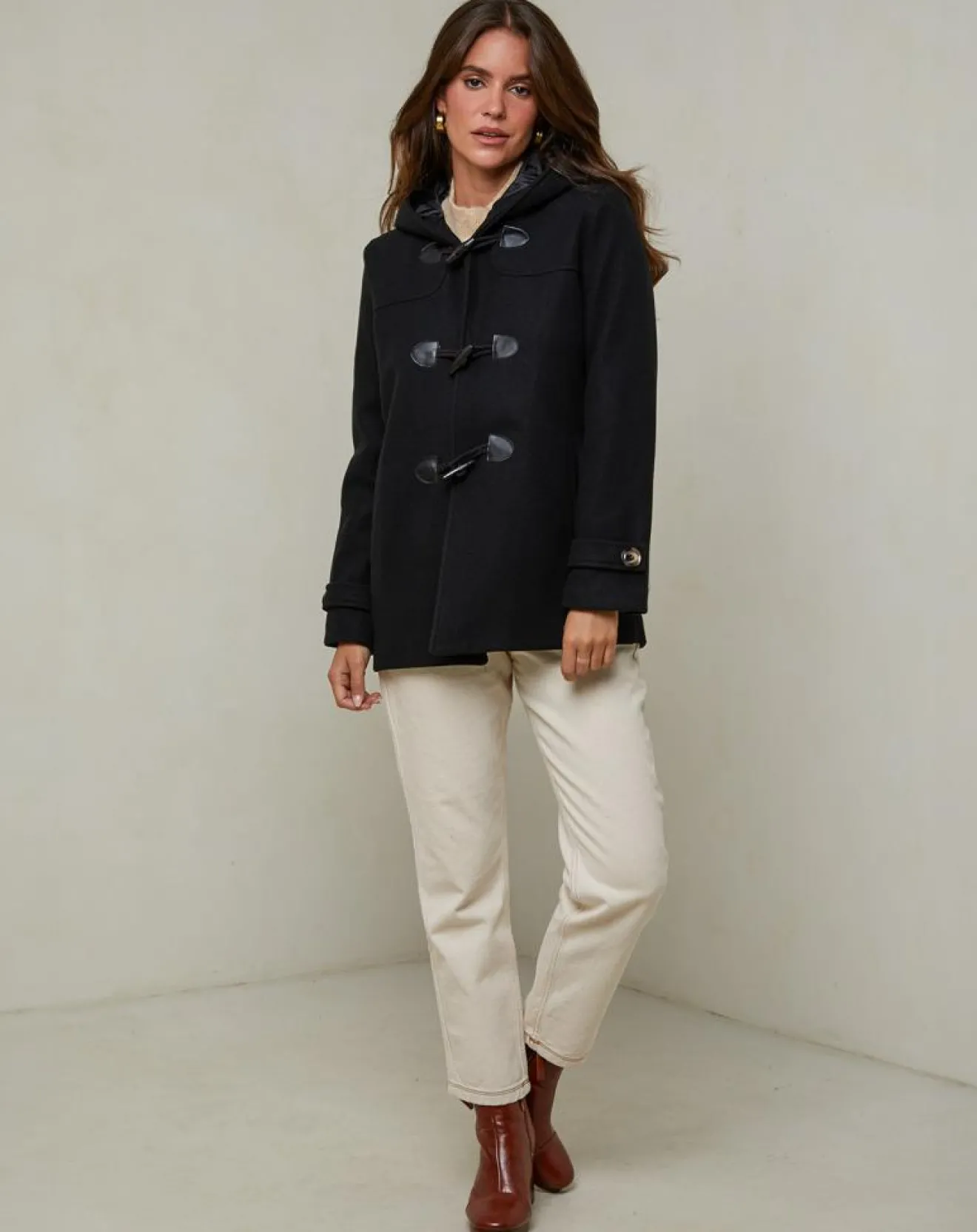Manteau court à capuche, fermeture à tache avec deux poches sur les côtés