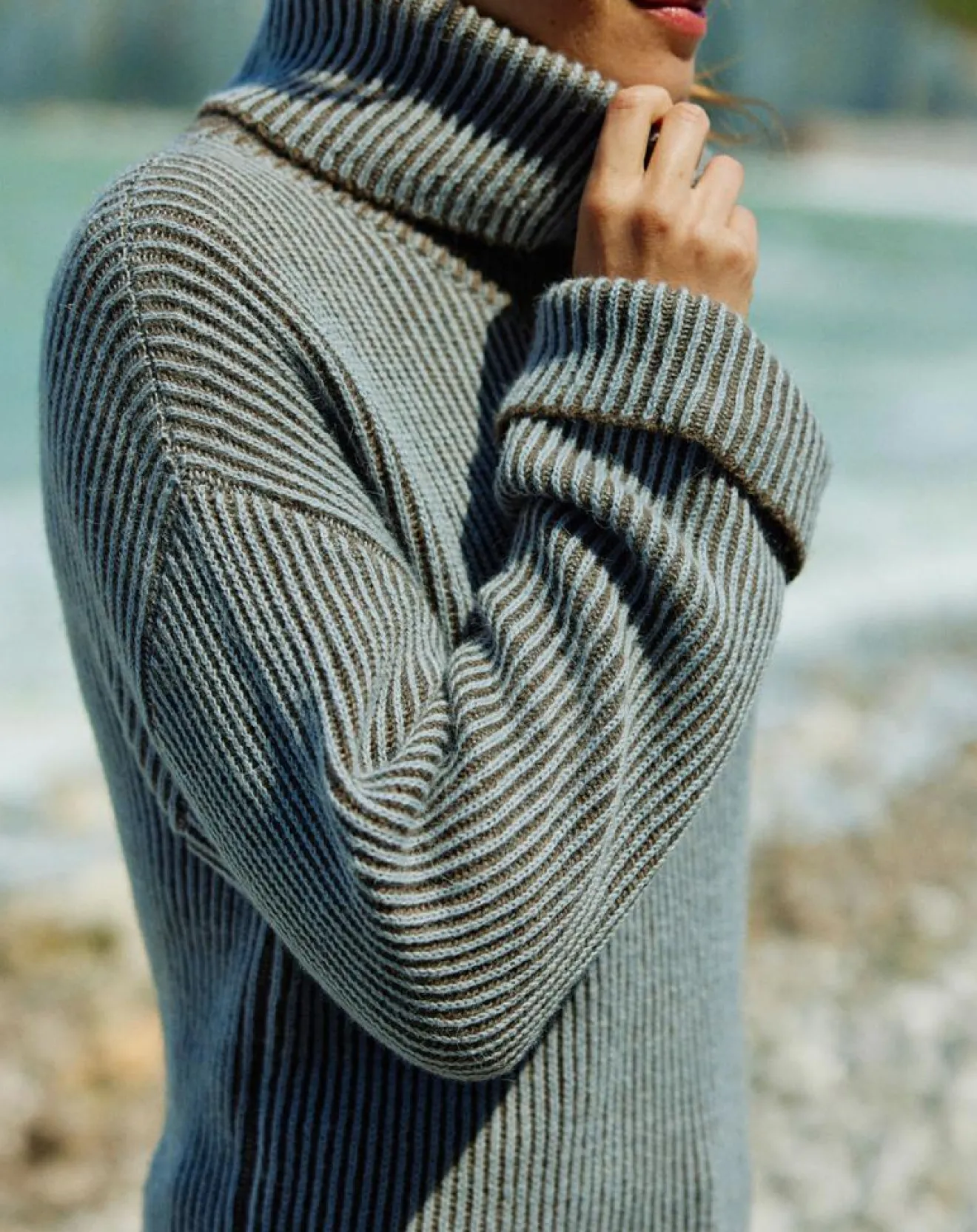 Larges manches à revers, col roulé