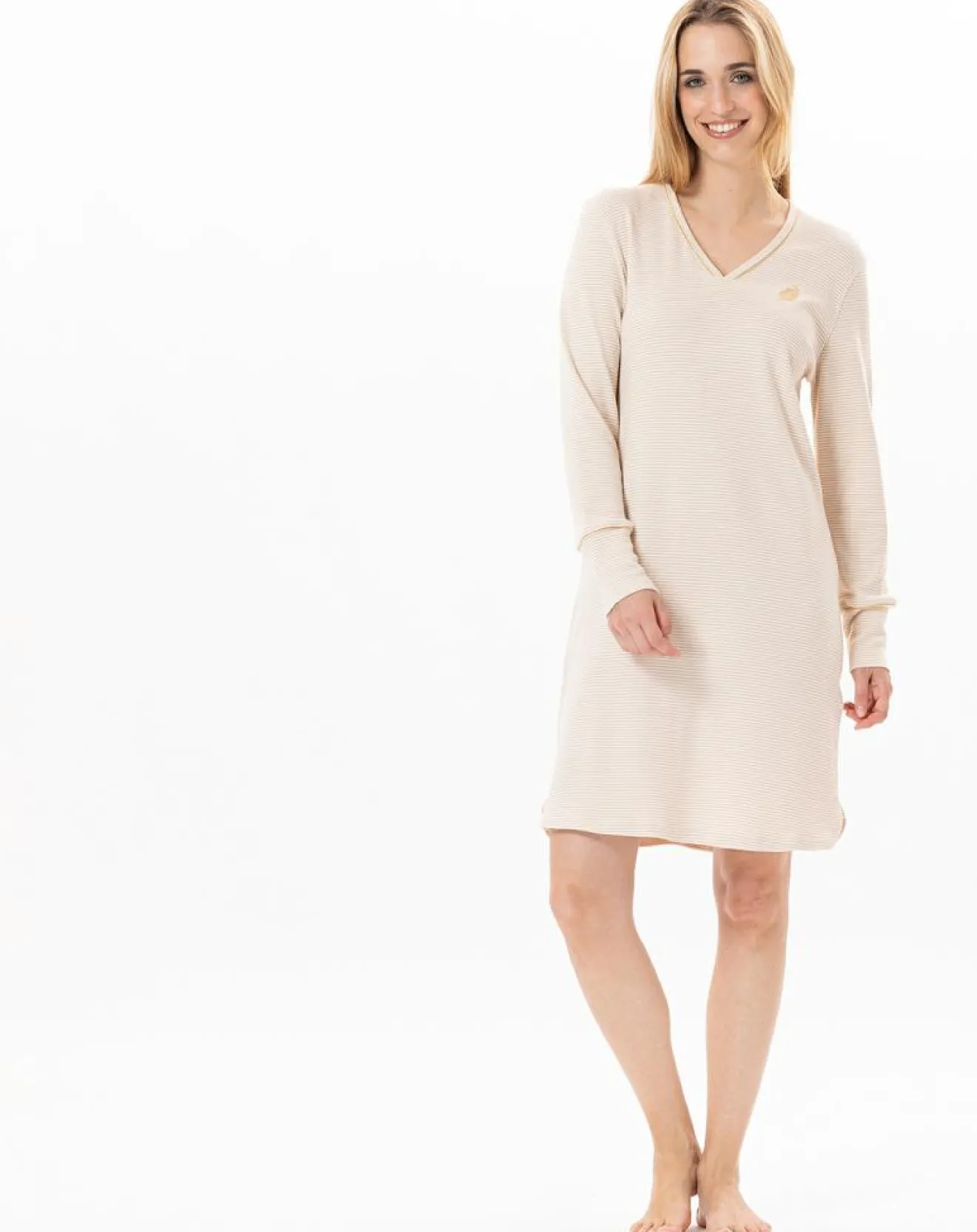 Pour les plus frileuses, associez la chemise de nuit GARANCE 801 à une robe de chambre, un peignoir ou une veste Essentiel : vous aurez chaud tout en étant élégante au saut du lit.