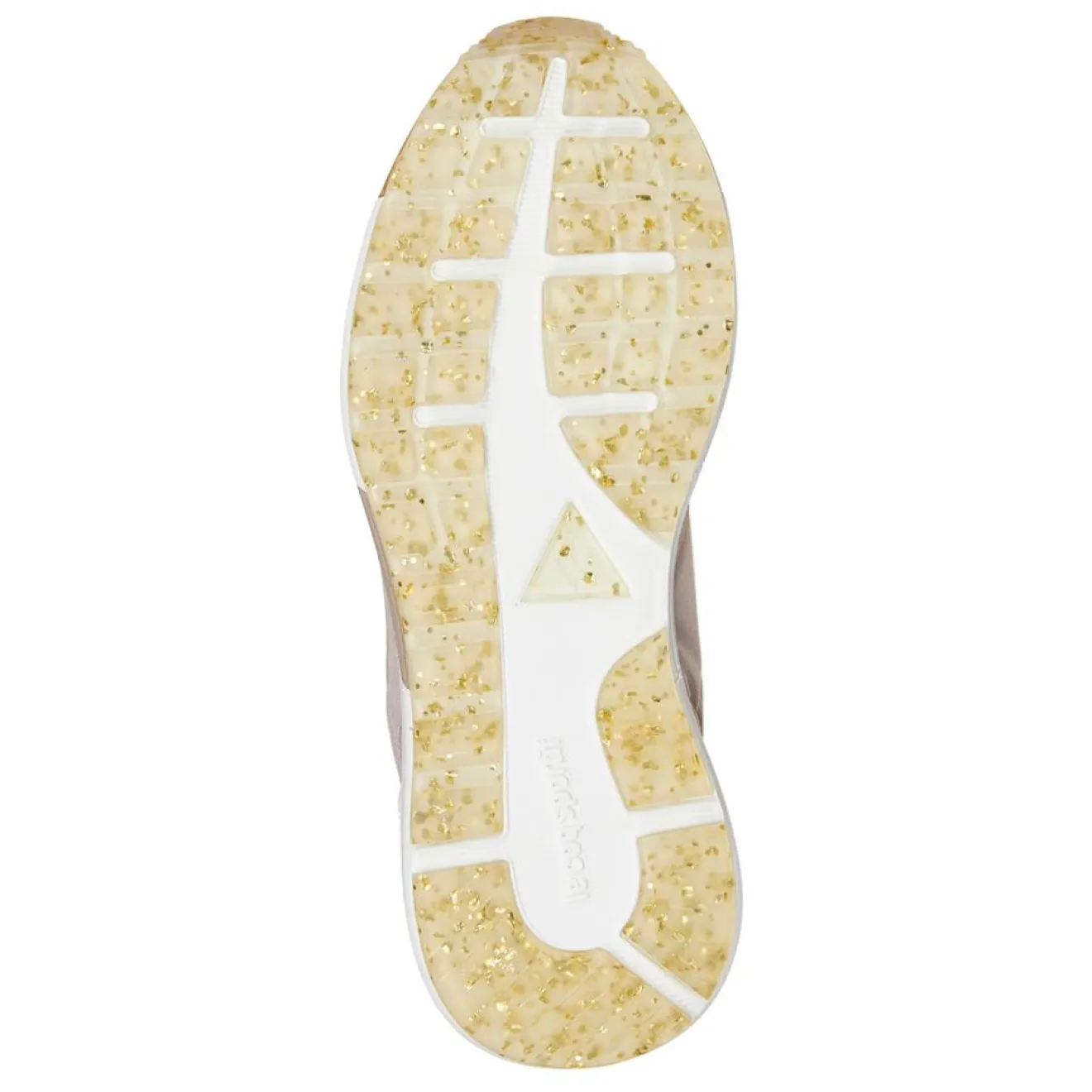 Ce modèle inspiré des modèles runnig des années 1990, présente un tige en crêpe, un empiècement latéral effet nubuck et une semelle pailletée.