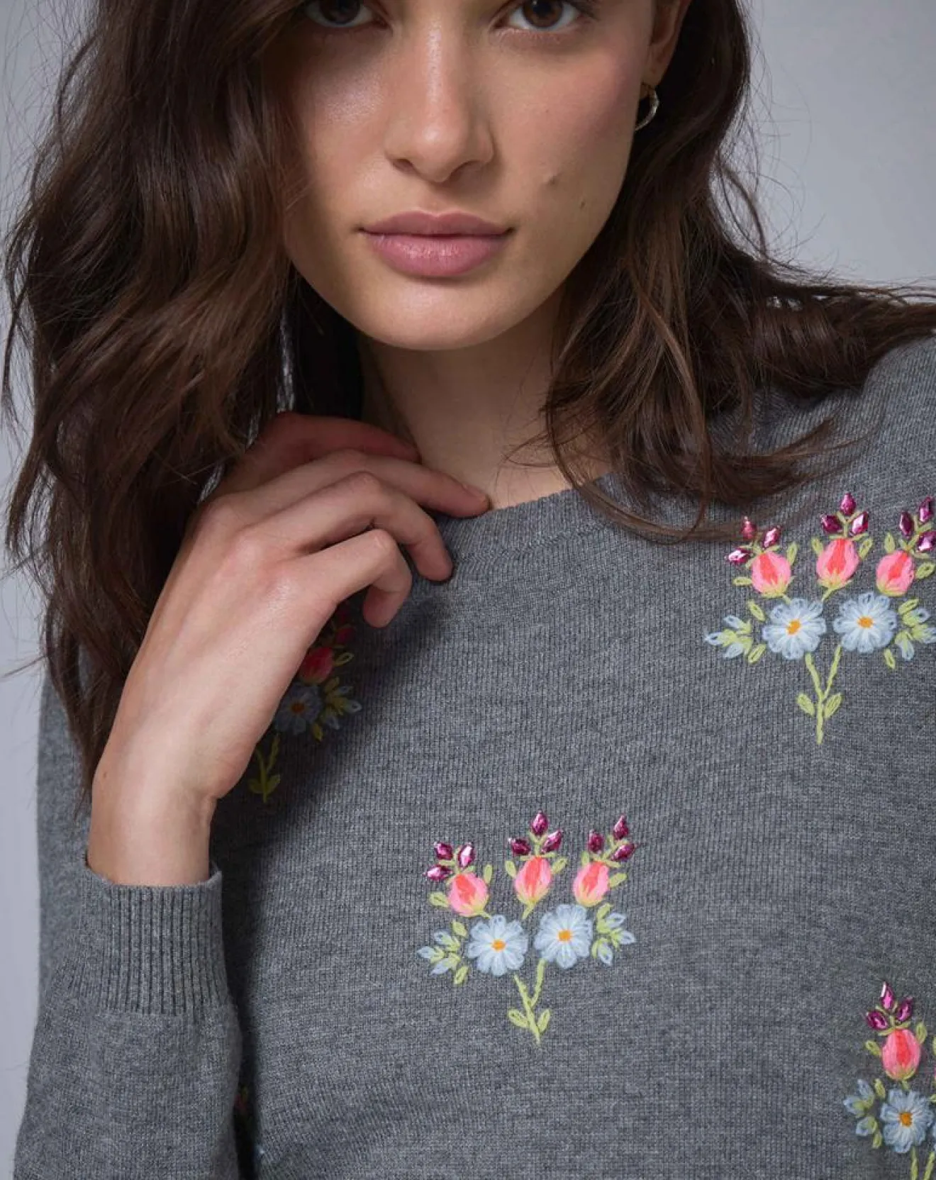Broderies florales et strass sur le devant