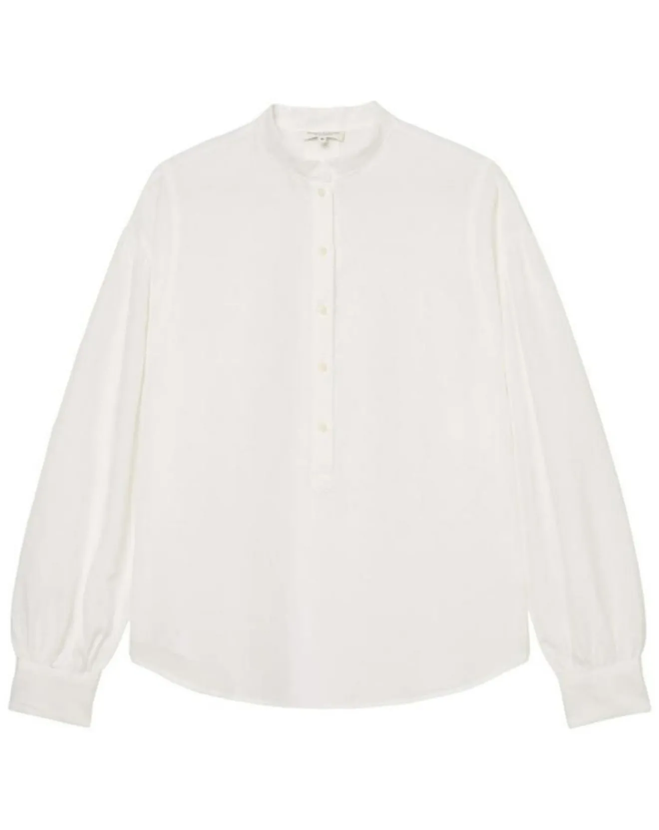 Cette saison, le coton a trouvé deux solides partenaires : le coton et le lyocell ! Ce mélange haut de gamme est parfait pour ce chemisier ample doté d’un col droit.