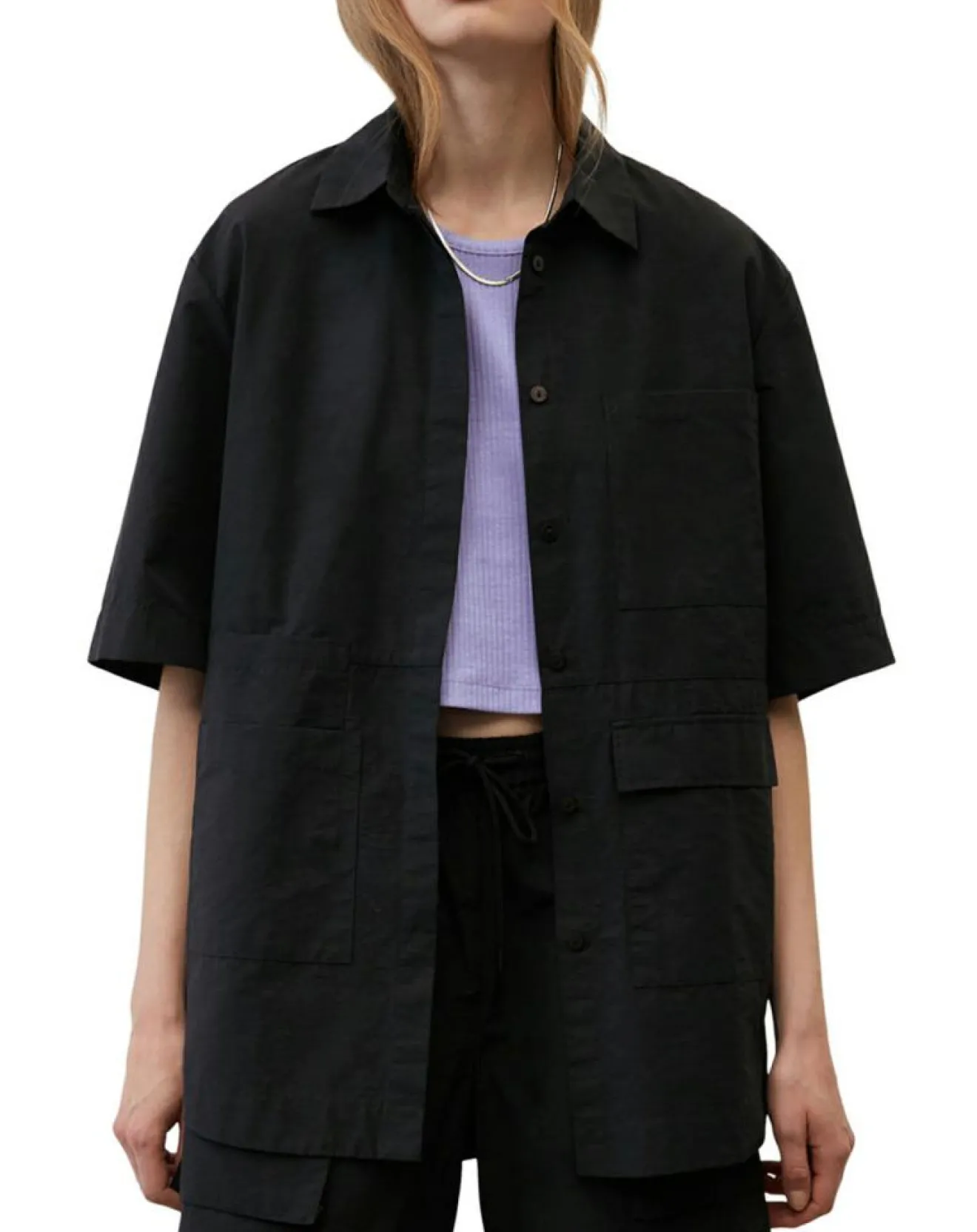 Le style millénaire décontracté, c’est LA tendance cette saison : le chemisier cargo brillant en coton biologique et nylon ! Dans une matière technique à l’allure sportive qui apporte un petit côté cool.