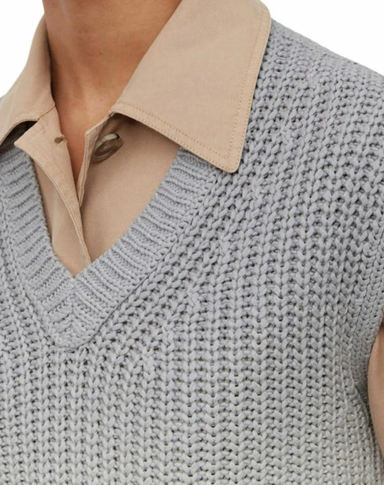 À profonde encolure en V et base droite fendue sur les côtés.