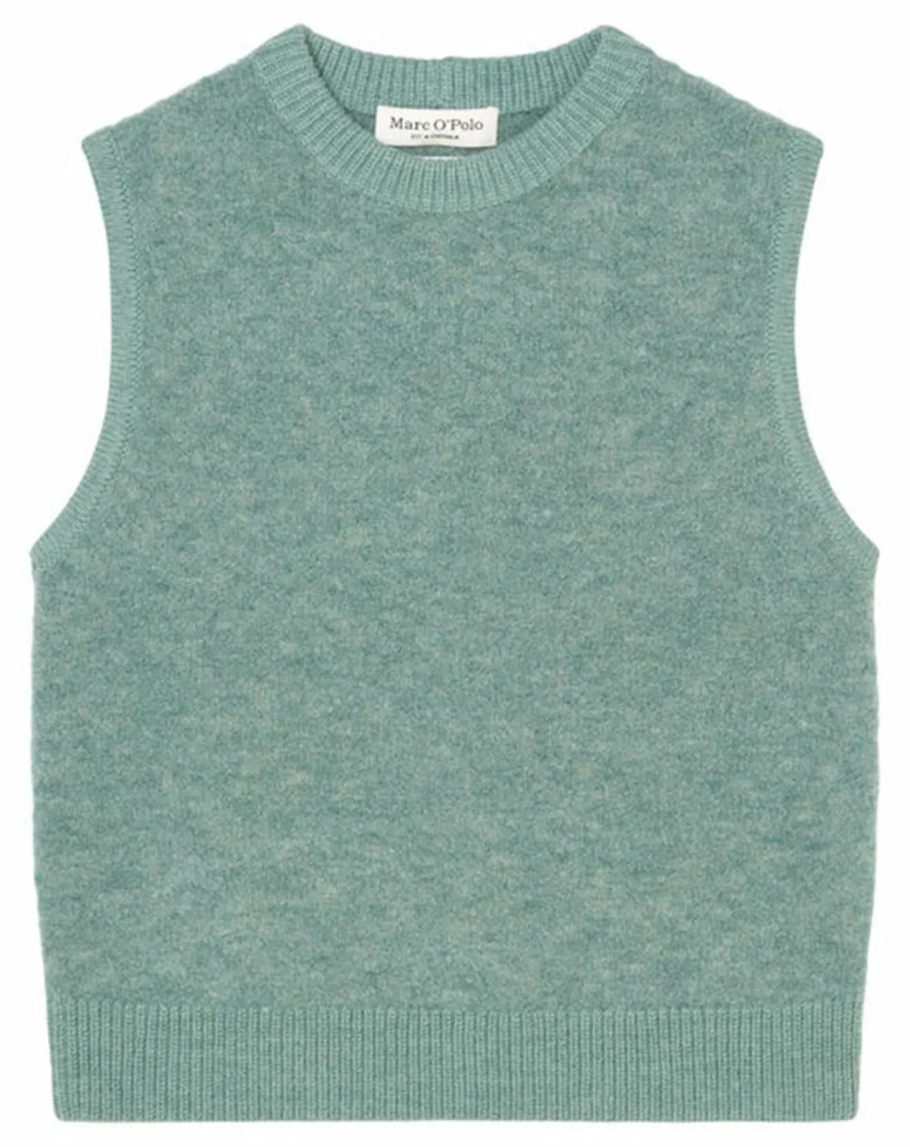Ils font actuellement à nouveau leur retour et sont résolument tendance et contemporains : les pulls sans manches ! Modèle court ultra-décontracté en maille bouclette de laine vierge mélangée à de la laine d’alpaga, de coupe Slim Fit féminine.