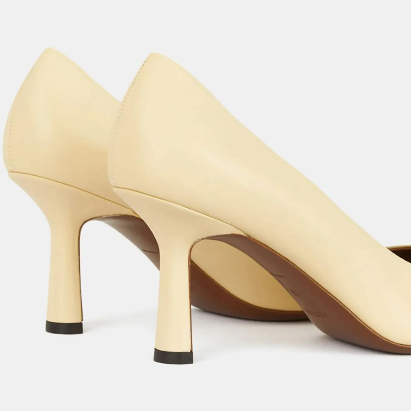 Ces escarpins Neous confectionnés en cuir de vachette, présentent un bout carré ainsi qu’un talon fin