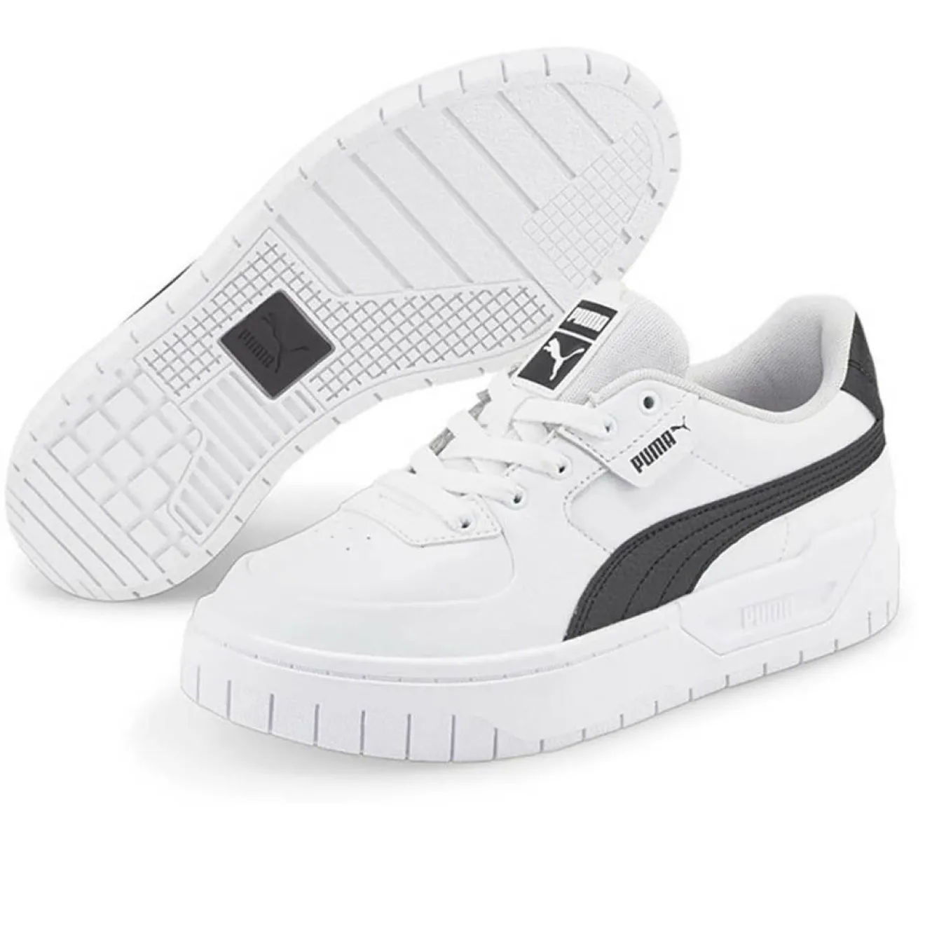 Ces baskets basses Puma en cuir présentent un bout rond, une fermeture lacets, le sigle sur le dessus et des détails ajourés sur le bout.