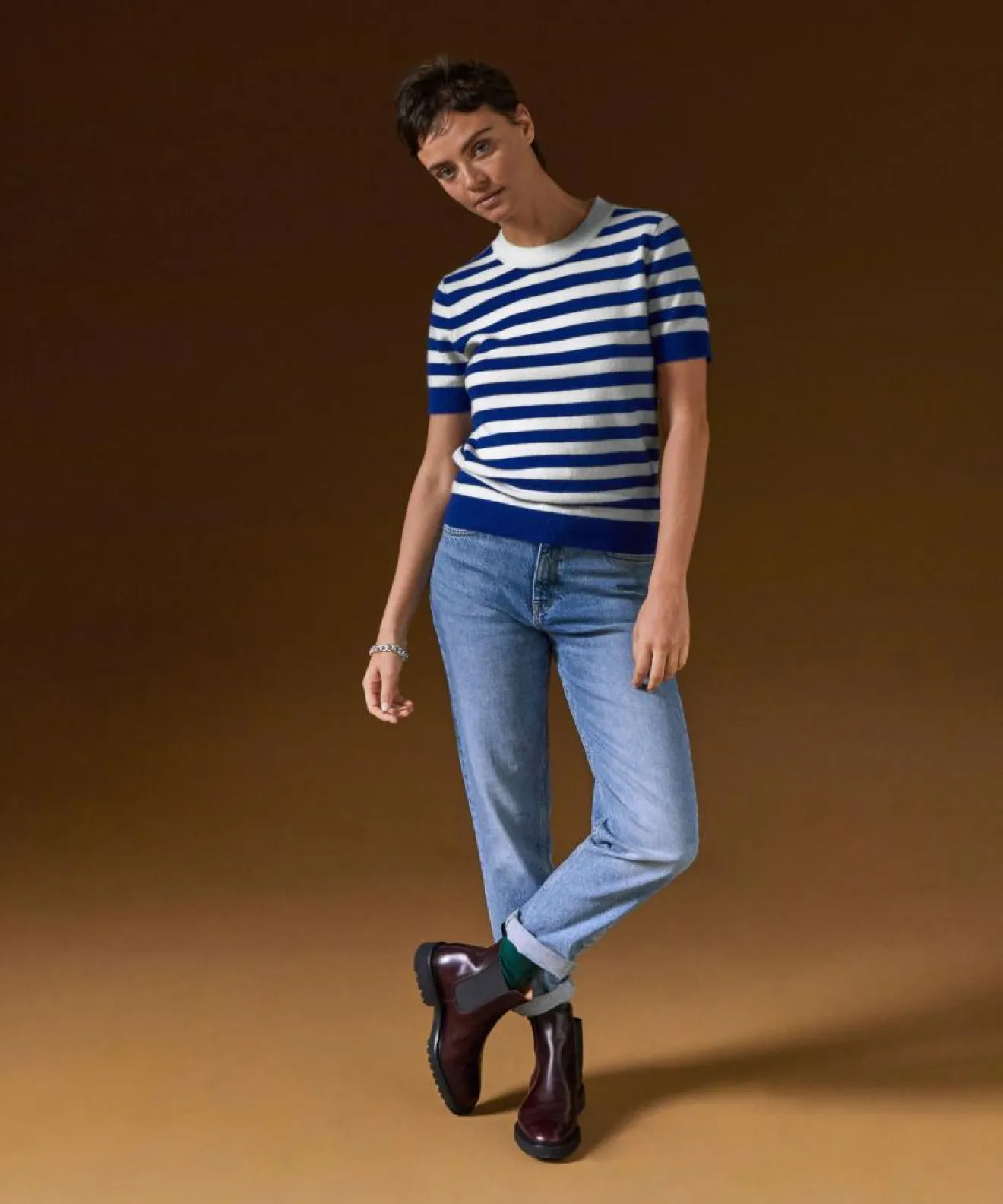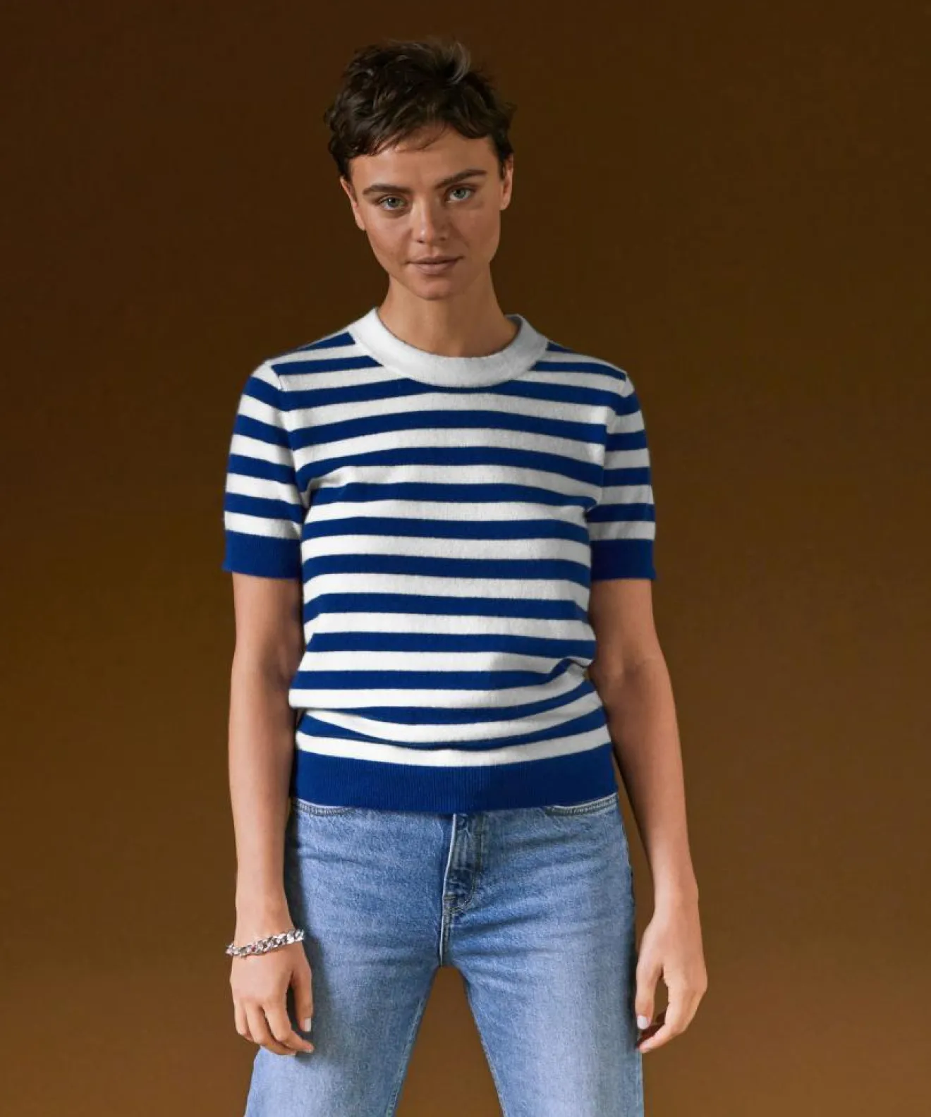 Femme Rodier Pull Adlyne manches courtes rayé blanc