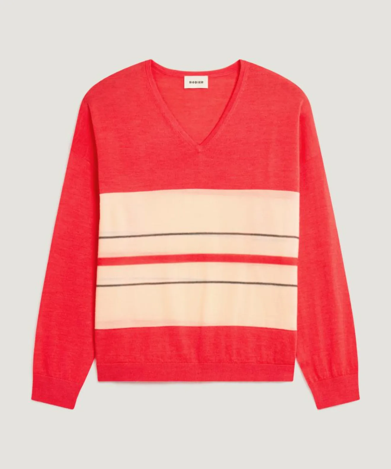 Femme Rodier Pull Caecilia 100% Laine col V rayures orange corail