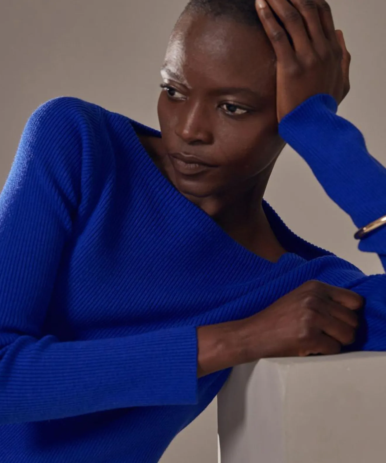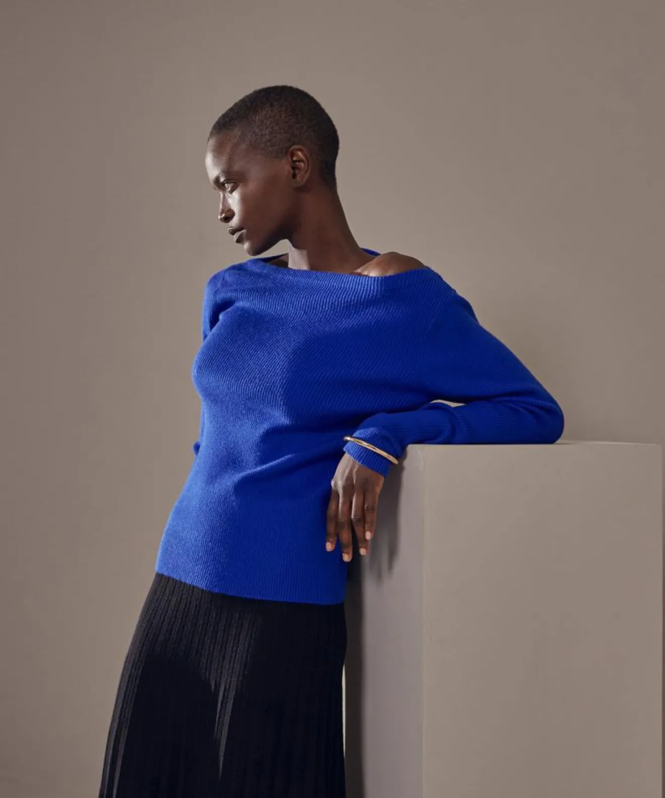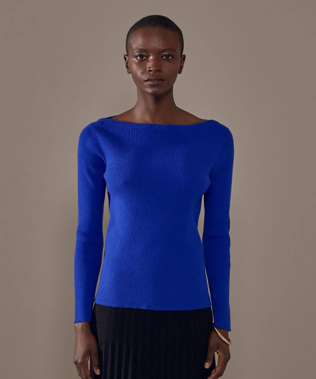 Femme Rodier Pull Ezia, col bateau côtelé bleu outremer