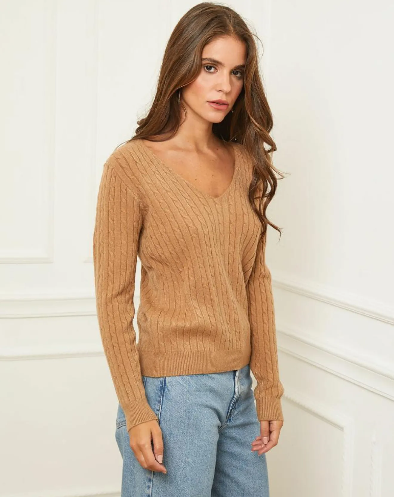 Pull col V, torsadé, manches longues
