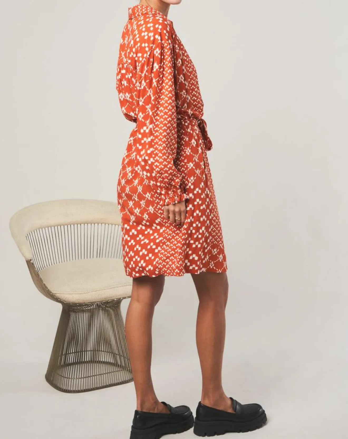 Sonia, notre robe chemise courte à imprimé exclusif Stella Forest. Sa coupe est droite et ses manches ballon sont smokées aux poignets par de jolis volants. Ceinture amovible pour souligner la taille selon vos envies.