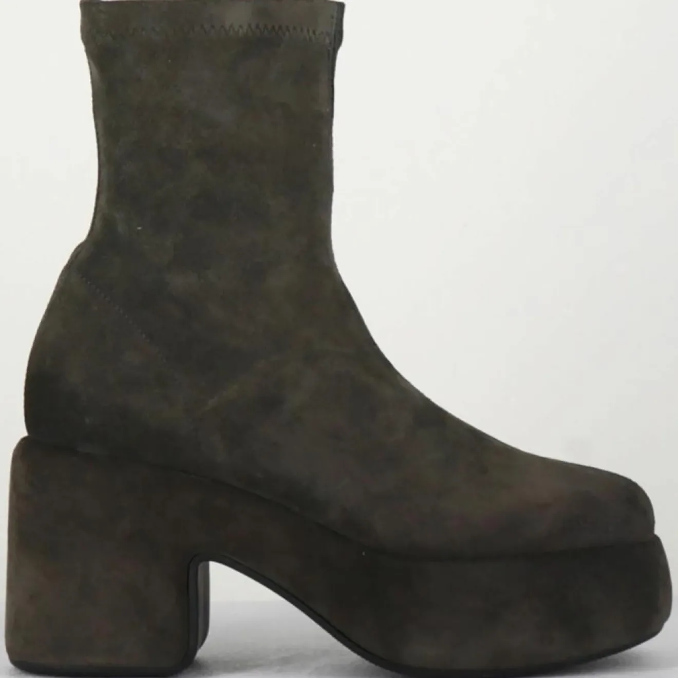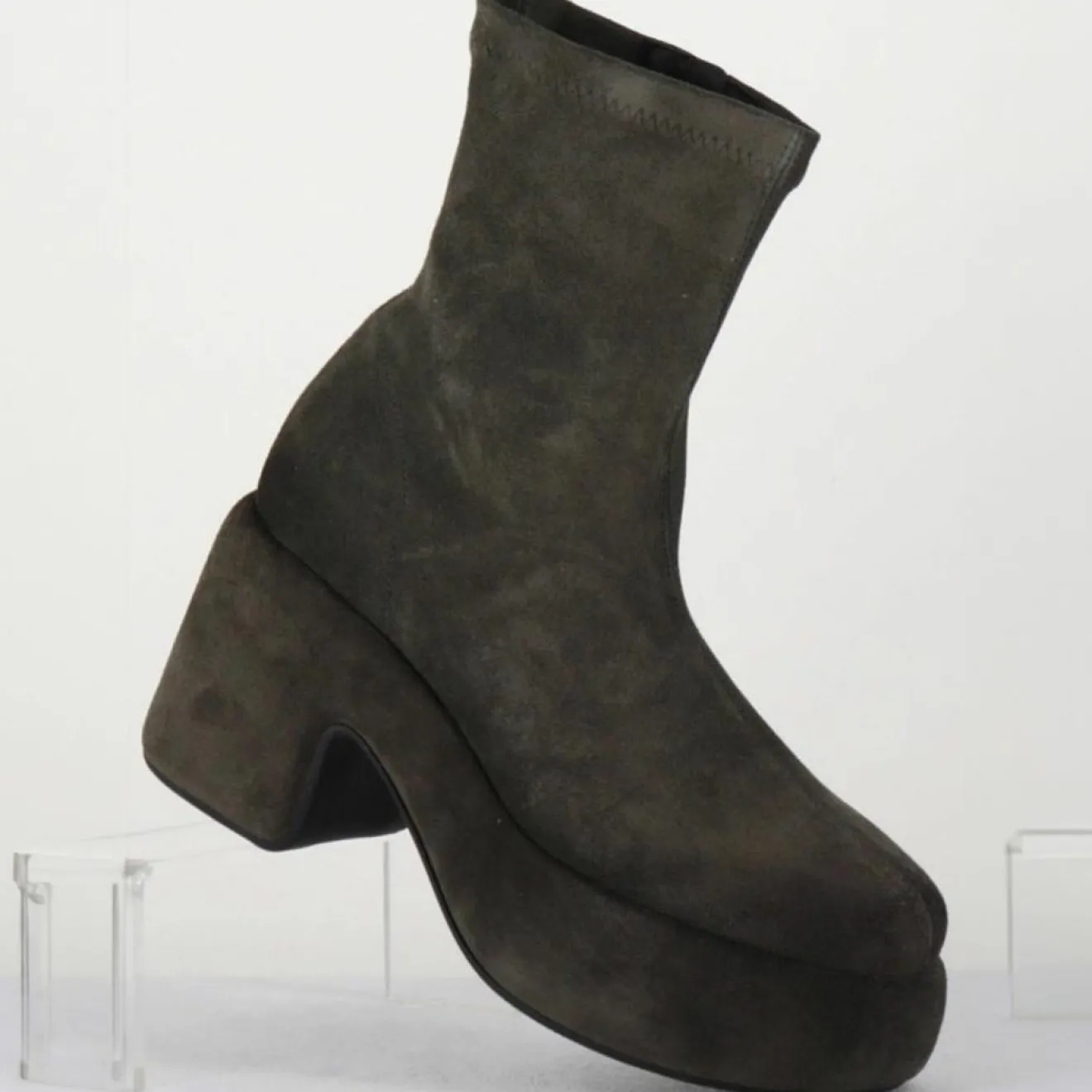 Boots en daim couleur gris anthracite, forme rétro à plateforme confortable, bout rond, tige stretch galbante & zip intérieur.