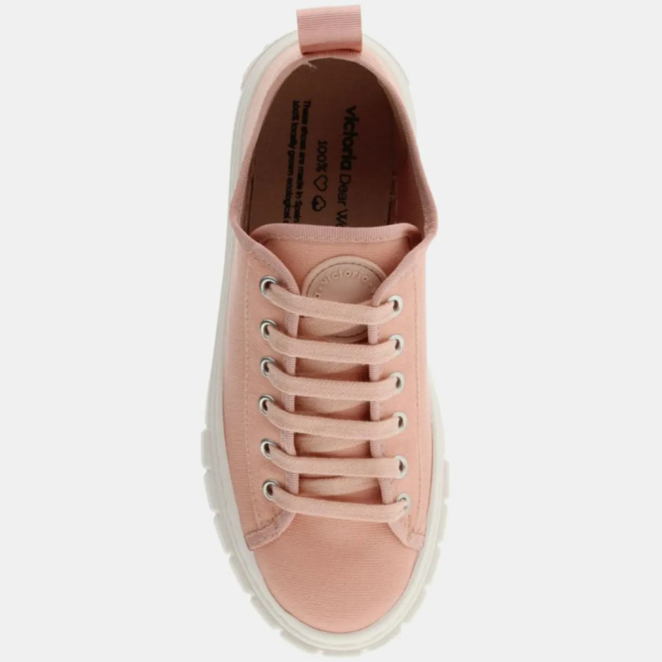 Ces baskets basses Victoria en coton présentent un bout rond, une fermeture lacets, un tirant d’enfilage au dos et un patch siglé sur la languette.