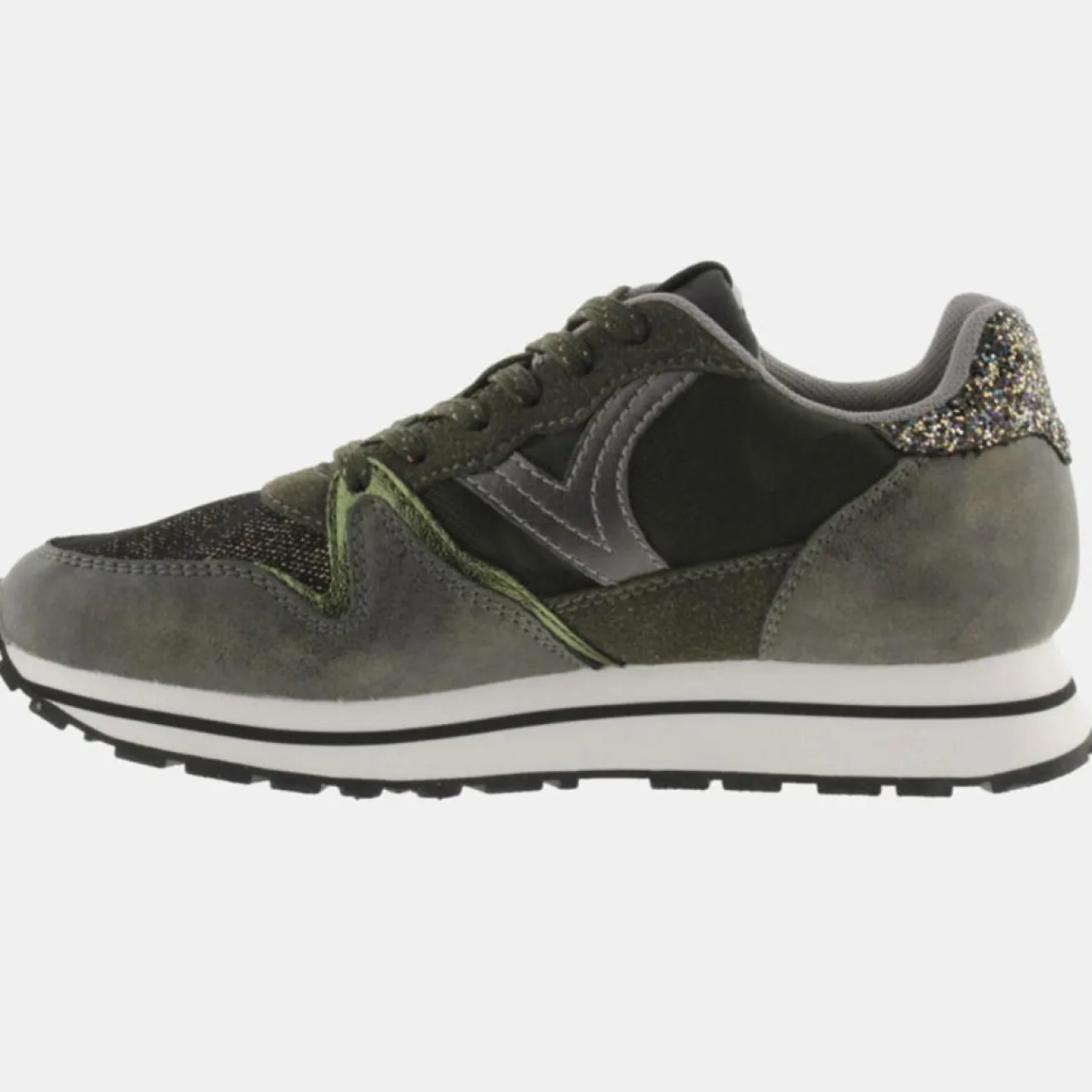Ces baskets basses Victoria séduisent par leur mix de matières, avec empiècements velours, embossés serpent et métallisés