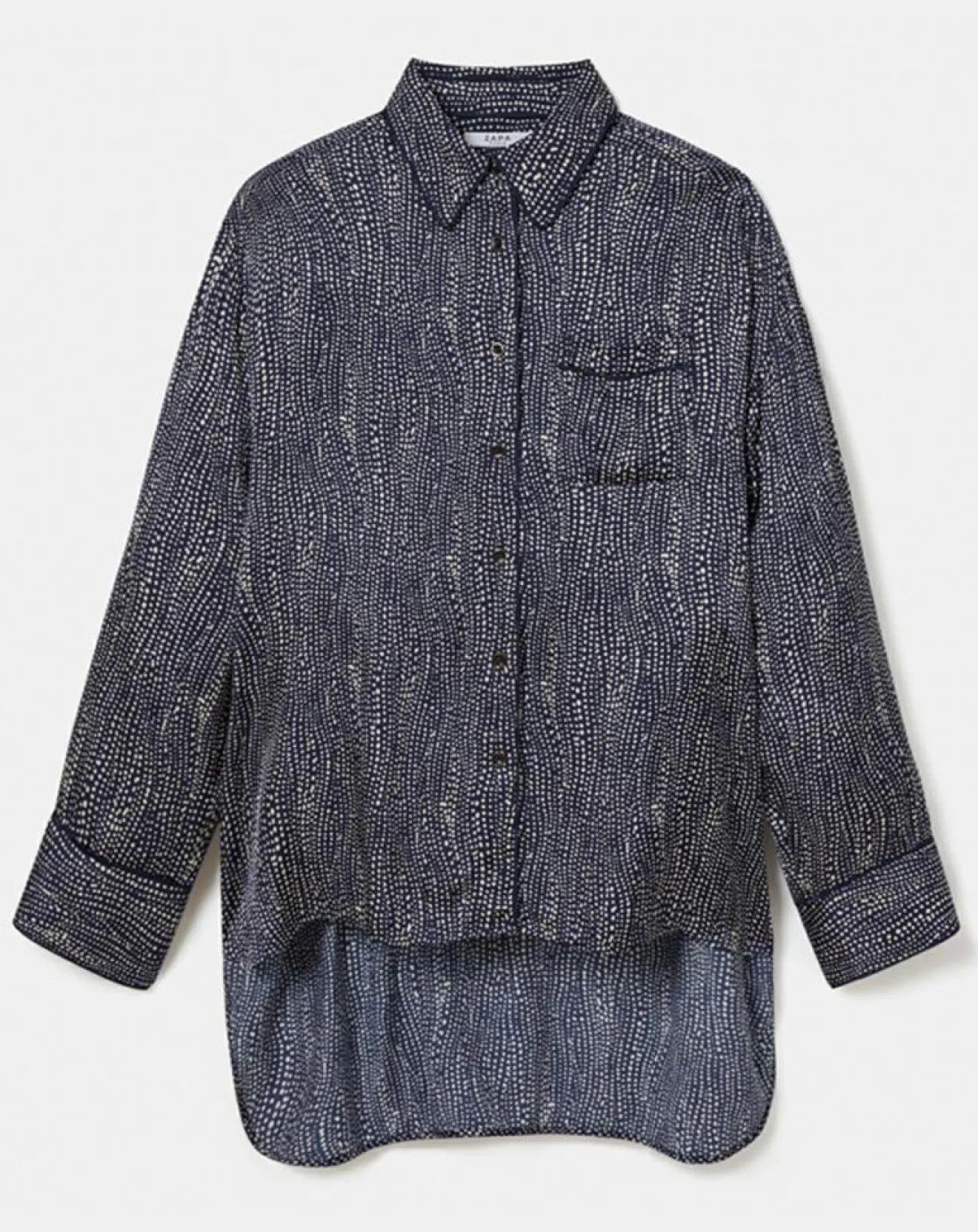 Dotée de délicats points blancs, CHACHA se présente comme la chemise raffinée de la saison.On la porte facilement en total look avec le pantalon assorti.