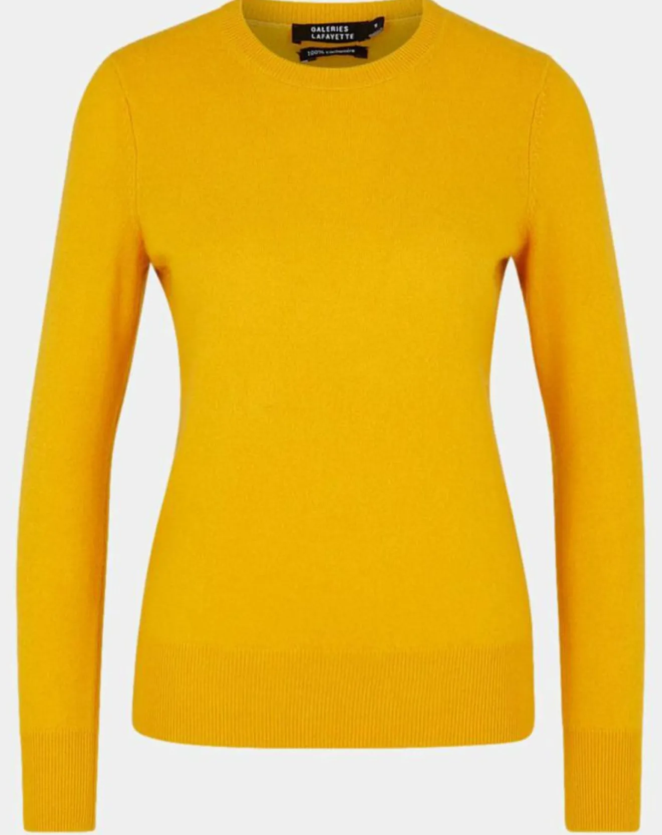 Ce pull droit Galeries Lafayette en cachemire est muni d’un col rond, de manches longues et de finitions côtelées.