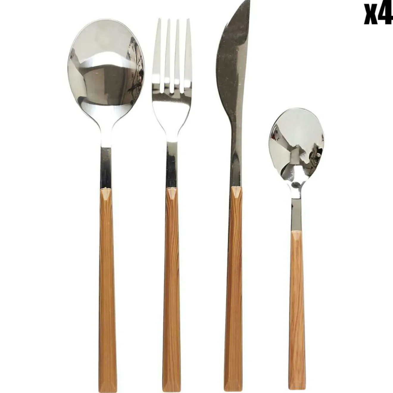 Cette jolie ménagère 16 pièces effet bois sera du plus bel effet sur vos tablées !