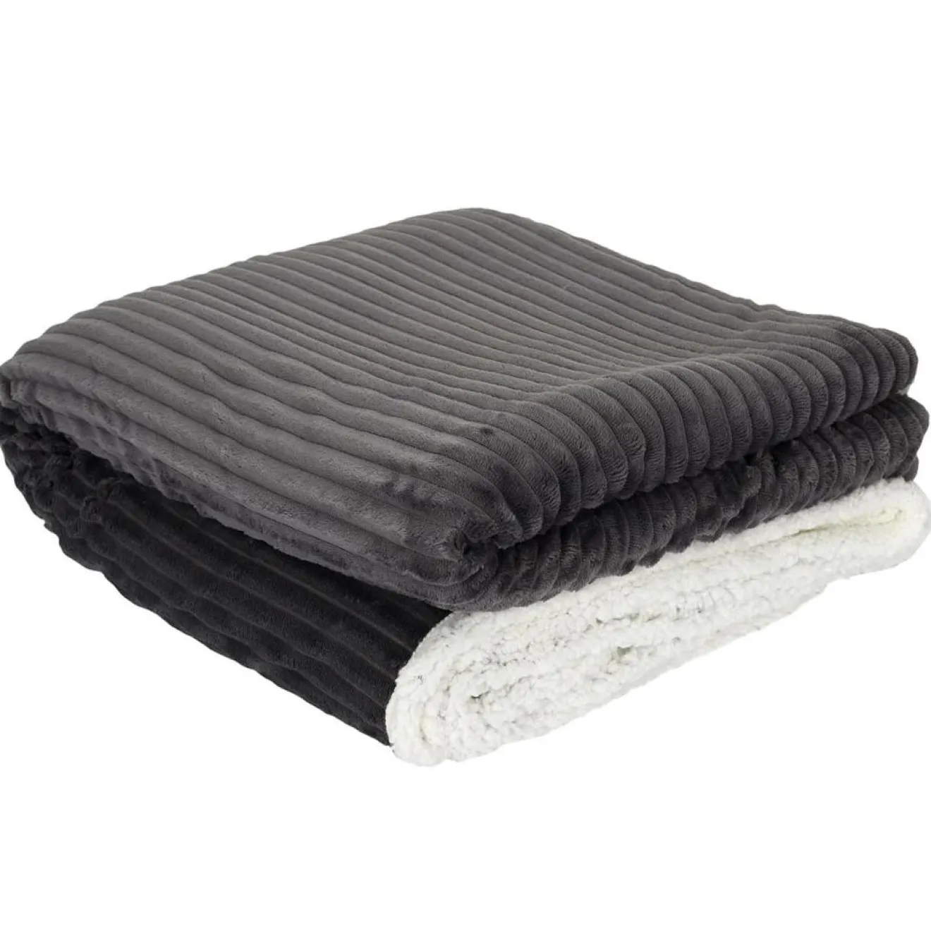 Home Deco Factory Plaid flanelle sherpa XXL gris foncé – 140×200 cm